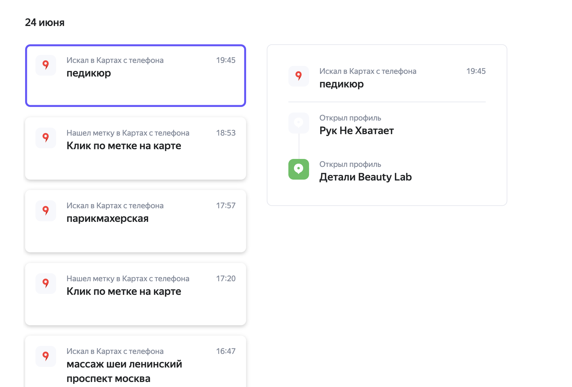 1. Таргетированная реклама: в геосервисах она существует по тому же принципу, что и в соцсетях. При настройке рекламы вы можете выбрать социально-демографические критерии (пол, возраст), время показа рекламы, интересы, а также воспользоваться сервисом Яндекс.Аудитории, который собирает данные о ваших клиентах через Яндекс.Метрику и подключенную к ней CRM.
