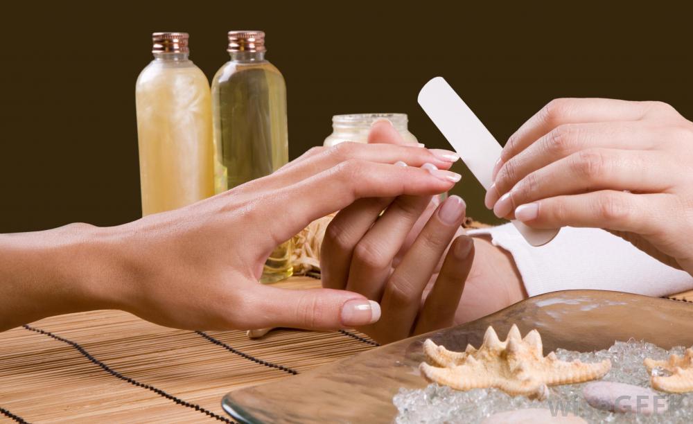 Сухим и обезжиренным с помощью жидкости ногтевым пластинам придают необходимую форму. Делать это следует до водной процедуры, поскольку распаренные ногти легко повреждаются при применении пилочки.