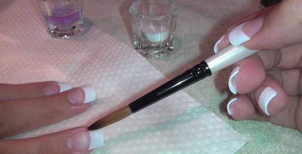 После пятиминутной ванночки руки нужно тщательным образом вытереть полотенцем, чтобы избежать появления заусенцев, которые образуются при частом контакте с водой. После этого ногти обрабатываются обезжиривателем.