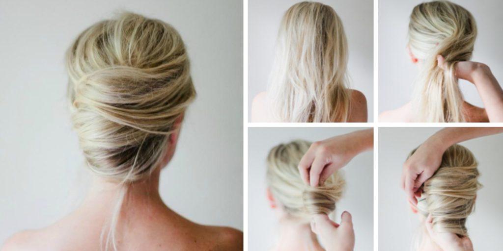 - Закрутите волосы внутрь, постепенно поднимая пряди вверх так, чтобы в конце у вас остался небольшой хвостик, который затем заправляется внутрь созданного завитка.