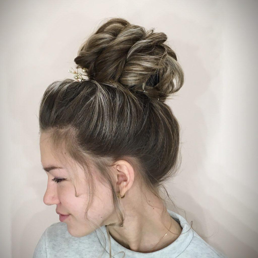 Эта прическа может быть как повседневной, так и праздничной, вы можете собирать его не макушке, а можете на затылке. Как ваша фантазия разгуляется. Простая, но в то же время элегантная прическа позволит вам выглядеть на все 100 в любой ситуации. Не зря, эту прическу так любят голливудские красотки.