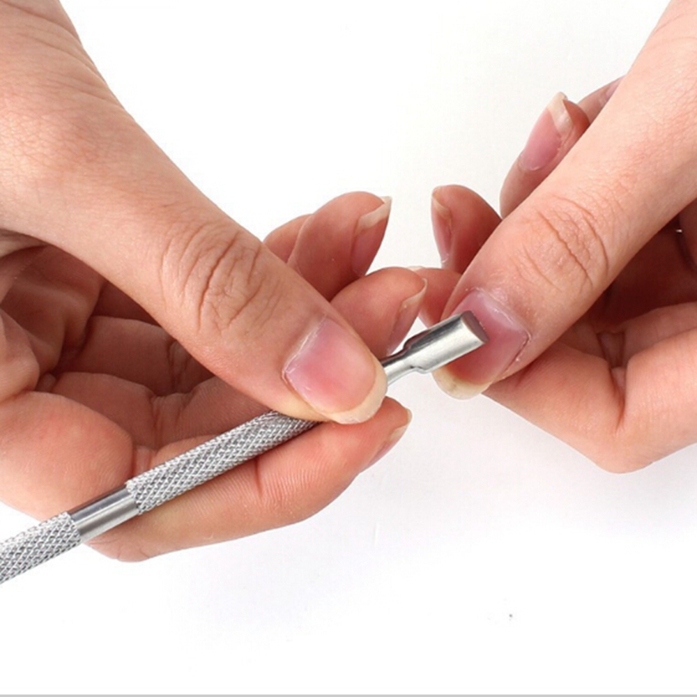 Первый используют для удаления грязи с внутренней стороны свободного края ногтя и прочистки ложбинок вдоль ногтевых валиков. Второй наконечник чаще делают в виде закругленной лопатки, которую используют для сдвигания кутикулы с ногтевой пластины и удаления птеригия, слоя кожи, прирастающего к ногтю по кромки кутикулы.Лопатка металлическая (пушер). Пушер имеет происхождение от английского слова push — толкать. Как ясно из названия, инструмент предназначен, для отодвигания кутикулы перемещения чего-нибудь без резки. Например, сдвигания наросшей кожи с плоскости ногтя. Главное отличие пушера от шабера – пушер не имеет режущих свойств.