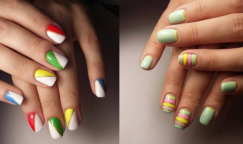 - окраска ноготков разными цветами в сочетании с выделением лунки или негативным пространством;