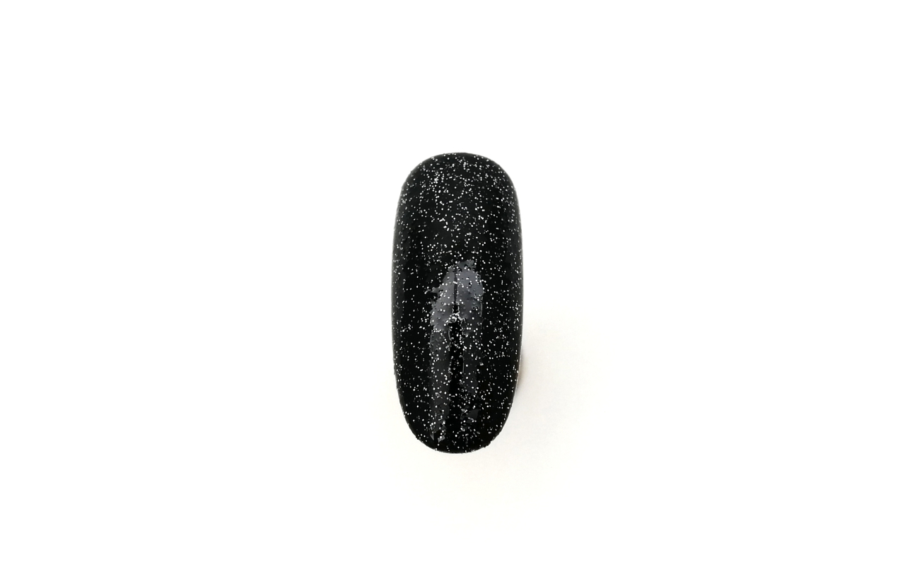 Стильно и эффектно будут смотреться длинные миндалевидные ноготки черного цвета, украшенные серебристыми блестками.