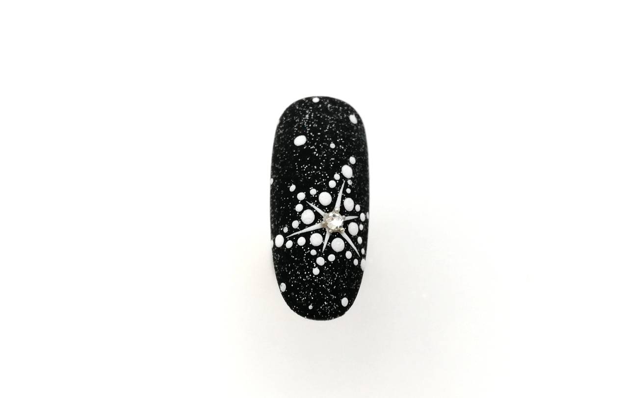 Темную зимнюю ночку на ногтях поможет воссоздать черный лак для фона. На таком покрытии эффектно рисовать снежинки в голубых и синих оттенках, а также изображать их в серебристом и белом цвете. Черный лак можно выбирать в любой интерпретации: матовый, глянец, «кошачий глаз» или с блестками в составе.