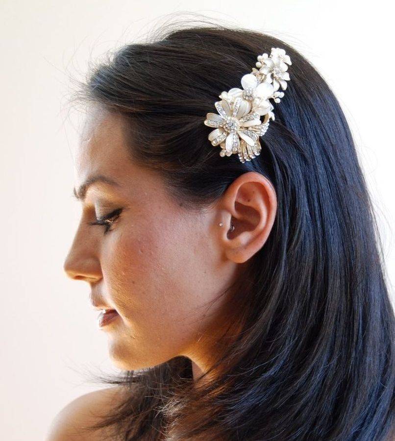 - шпильки, заколки невидимки должны подходить наряду, можно выбирать в одной цветовой гамме или использовать классический декор в виде элегантных жемчужных шпилек, тонких ободков.