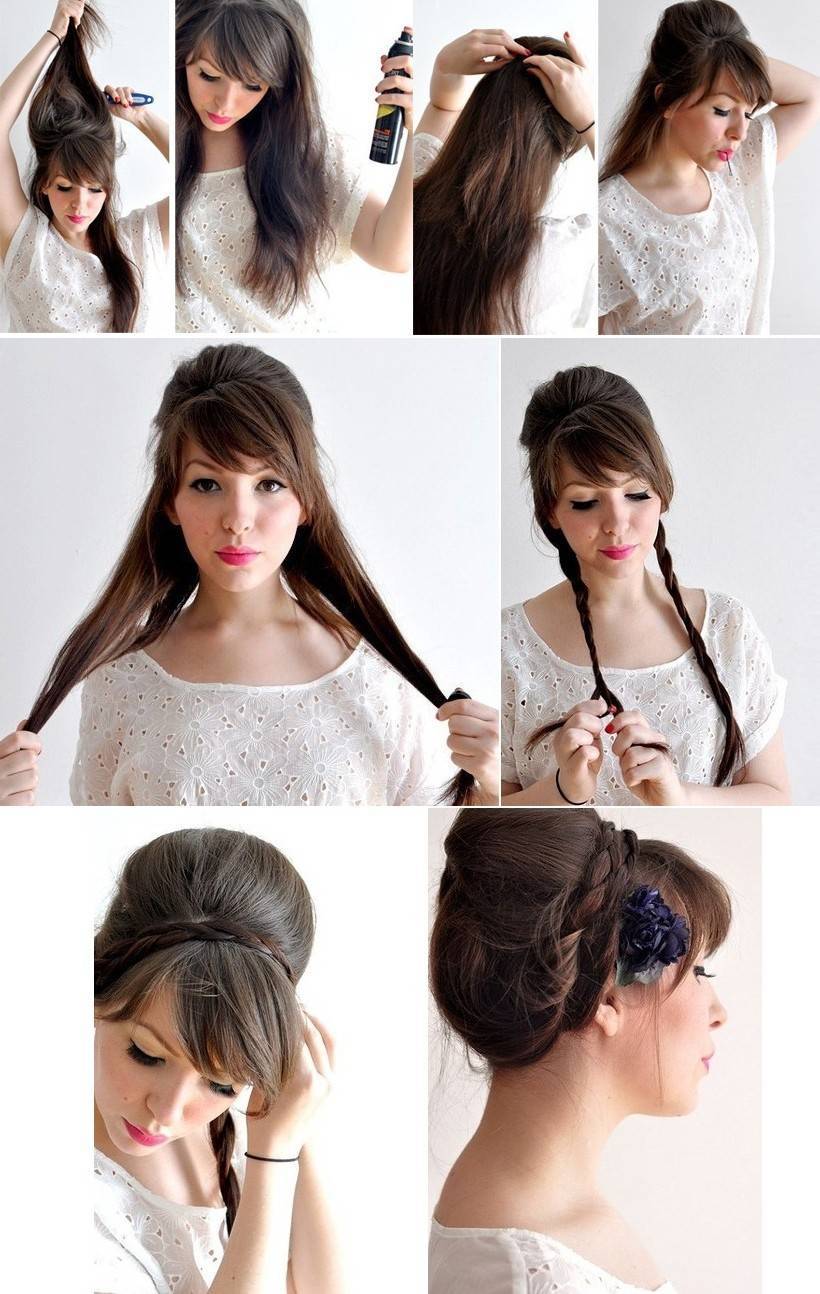 В статье Стильные прически на средние волосы. Этапы и мастер-классы с фото (больше 100 фото), можно научится делать разные прически при помощи схем и пошаговых фото.