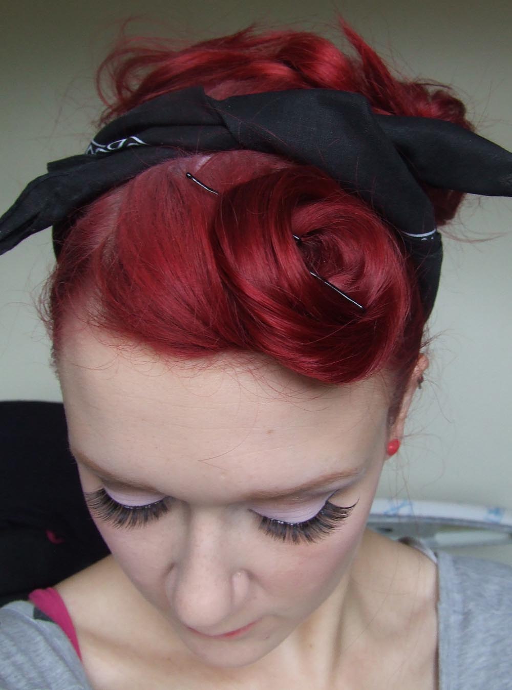 Расчесать волосы, надеть ободок, а остальные волосы подогнуть под него. По бокам можно оставить и слегка их завить. Полученный результат обработать лаком.