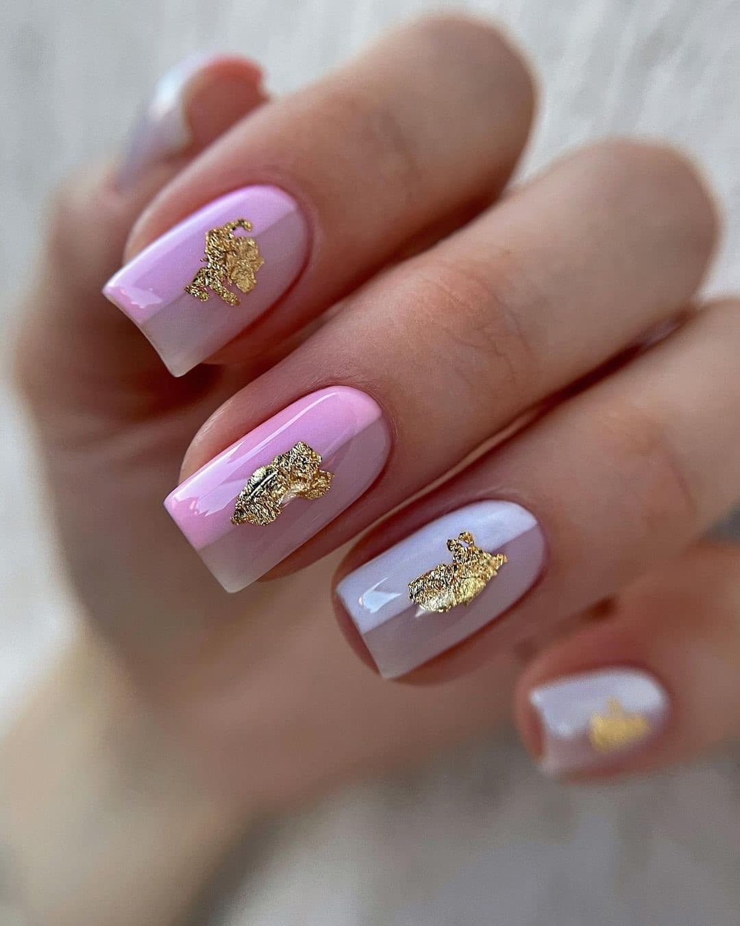 Сама по себе золотая или серебряная фольга — довольно яркий элемент. Но только не в тандеме с розовым цветом. Именно на таком нежном фоне декор не будет смотреться вызывающе и броско, а, наоборот, сбалансирует сдержанность и привнесет свежесть.
