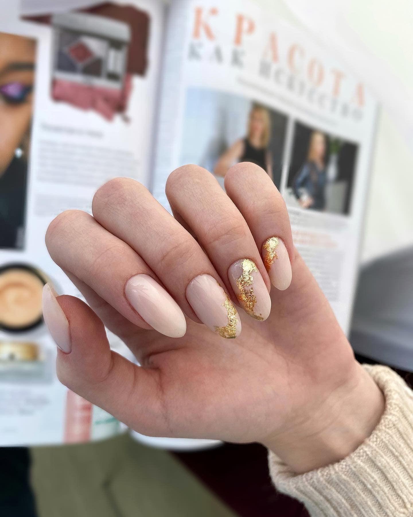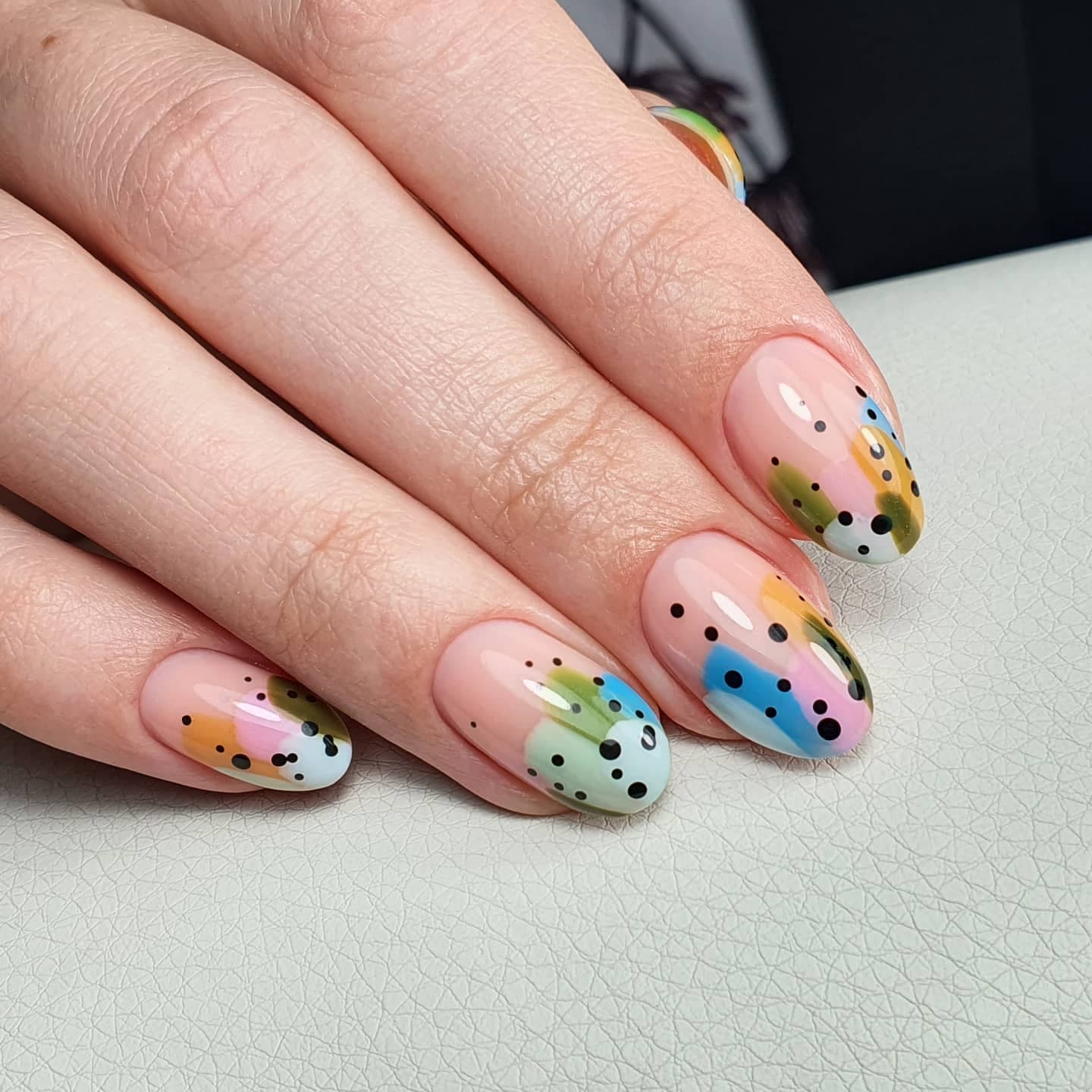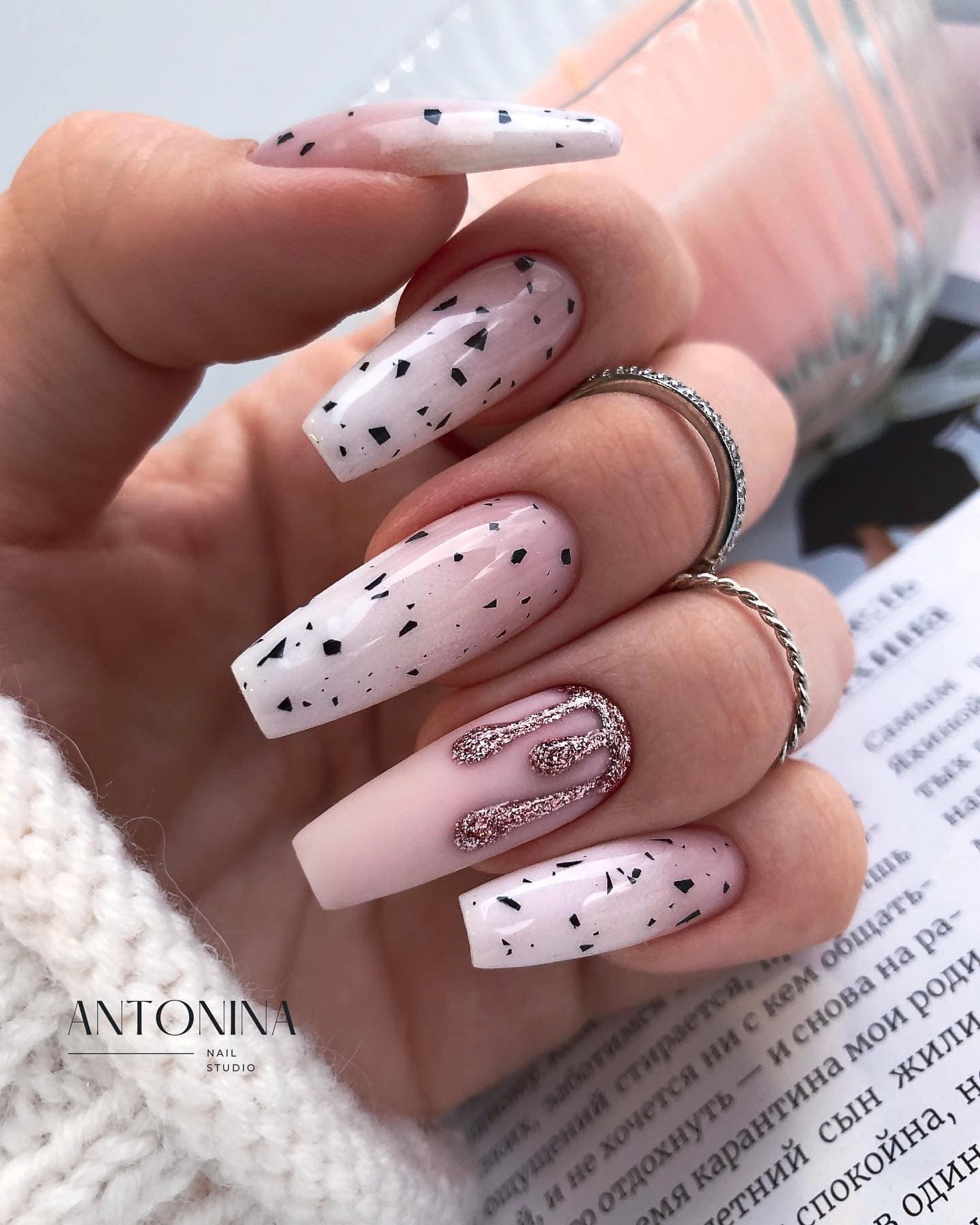 В 2023 годах такой дизайн лучше всего смотрится на миндальной форме, а также с мягким коротким квадратом. Точки могут быть как большие, похожие на горошек, так и совсем маленькие, напоминающие брызги кистью. Серебряный, белый и другие светлые цвета помогут создать более “конфетный” эффект, в то время как темные точки, наоборот, сделают розовые ногти более сдержанными и дерзкими.