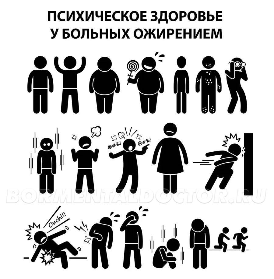Большинство больных ожирением согласятся, что плохое настроение и мрачные мысли — их «неразлучные друзья». Разумеется, под грузом десятков лишних килограммов человек испытывает не только физические, но и эмоциональные страдания. Причина комплексов и далеко не самых приятных чувств — от обиды до отчаяния и отвращения к себе — кроется не только в сознании своей непривлекательности и ущербности. Учёными доказано, что отложения жира негативно влияют на головной мозг, изменяя его деятельность, и это сказывается на образе мышления. Так, в ходе 15 масштабных экспериментов был выявлен тесный «союз» ожирения с депрессией, причём эта связь работает в обоих направлениях.