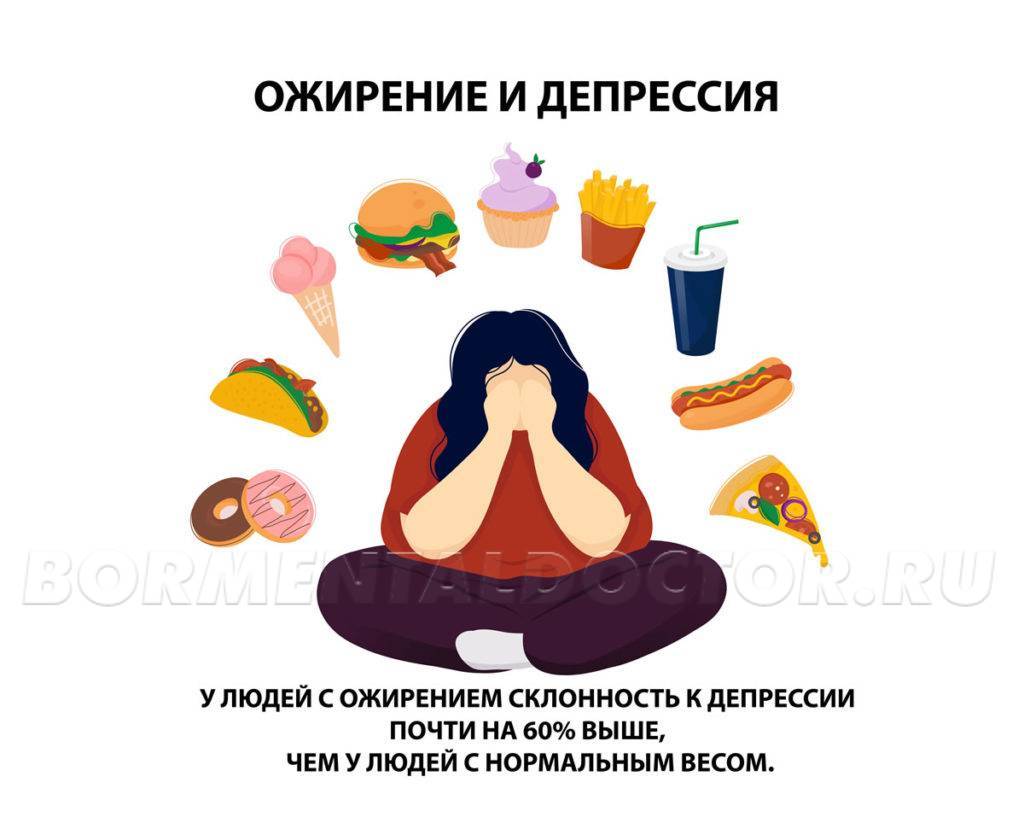 - У людей с ожирением склонность к депрессии почти на 60% выше, чем у людей с нормальным весом.