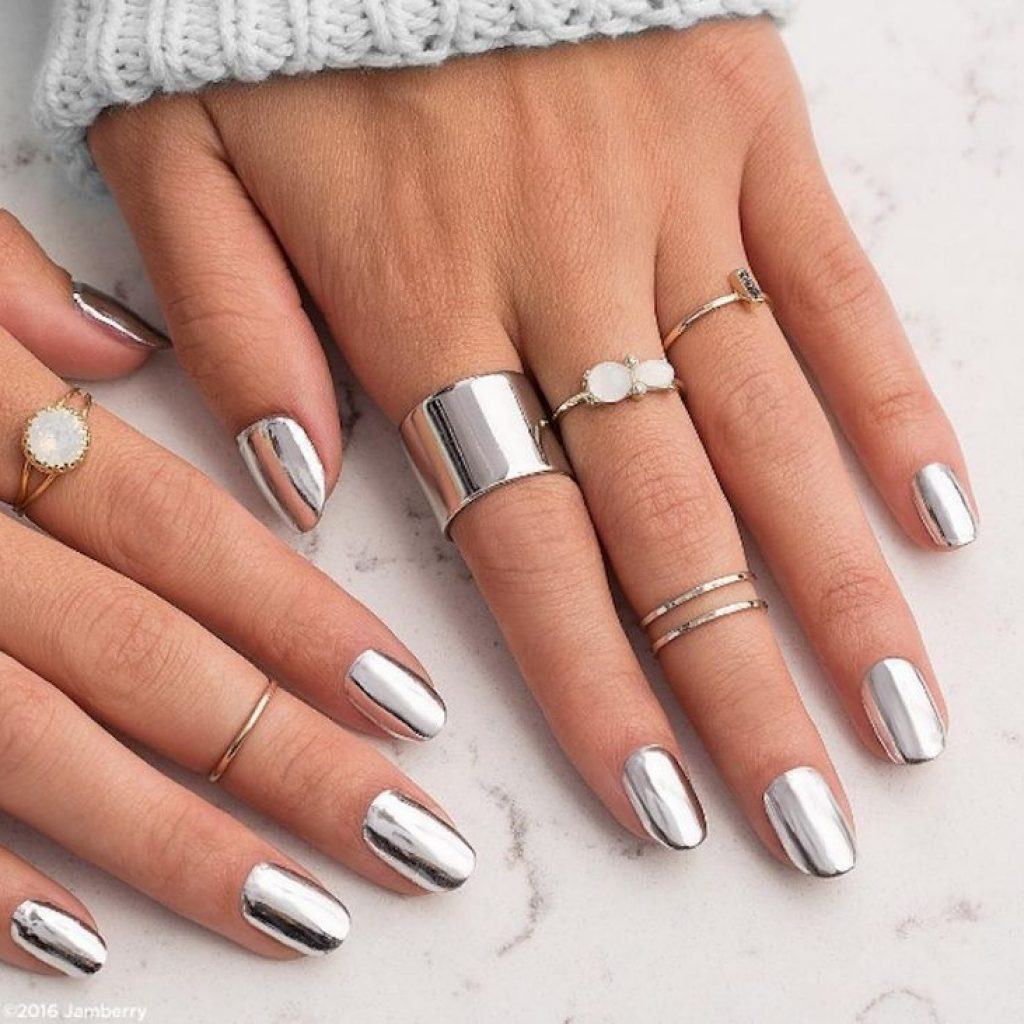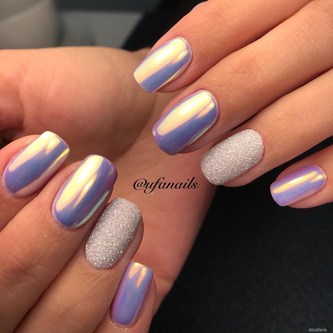 Если френч и лунный маникюр вам уже приелись, то обратите внимание на набирающий популярность тренд последнего сезона – зеркальный дизайн. Особенно эффектно он выглядит на ноготках овальной формы и миндаль. Необычность такого нейл-арта заключается в использовании специального покрытия, которое зрительно напоминает зеркало или отшлифованный металл