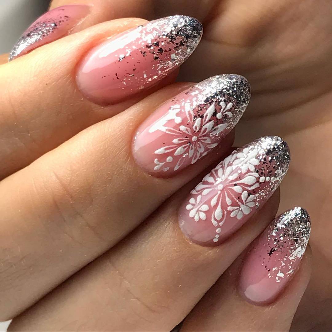 Интересным вариантом маникюра в домашних условиях является оформление покрытия блестками: