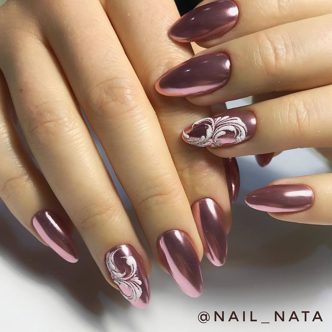В нынешнем сезоне огромной популярности набрали хромированные ноготки. Создать зеркальный блеск можно с помощью специального «металлического» лака, слайдеров, маникюрной фольги или втирки. Судя из многочисленных отзывов, именно последний из способов дает непревзойденный, идеальный серебряный эфект. Но выбор за вами.