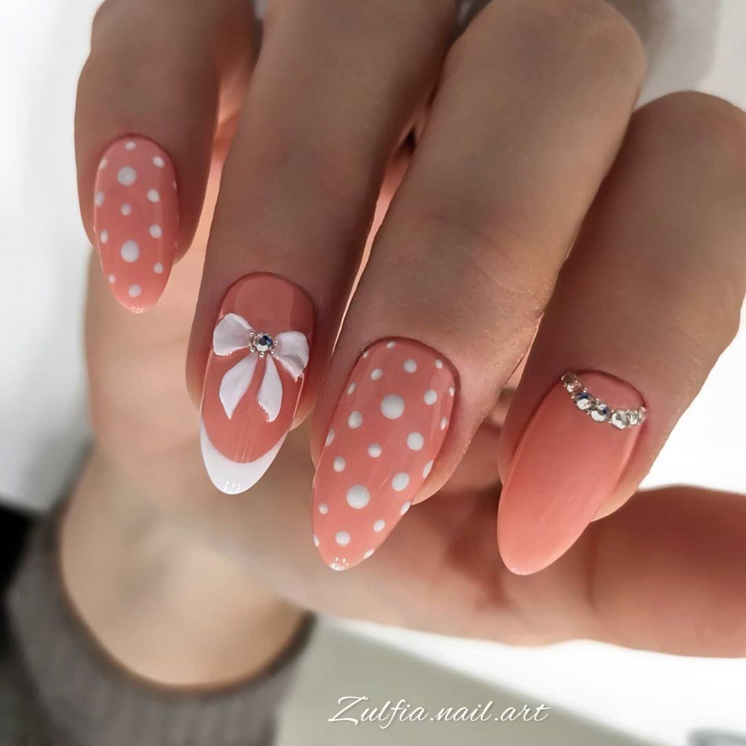 В 2022-2023 модно использовать 3D-украшения и разного рода жемчужины. Такой великолепный дизайн отлично будет сочетаться с серой гаммой аккуратных ноготков и придаст образу женственности.