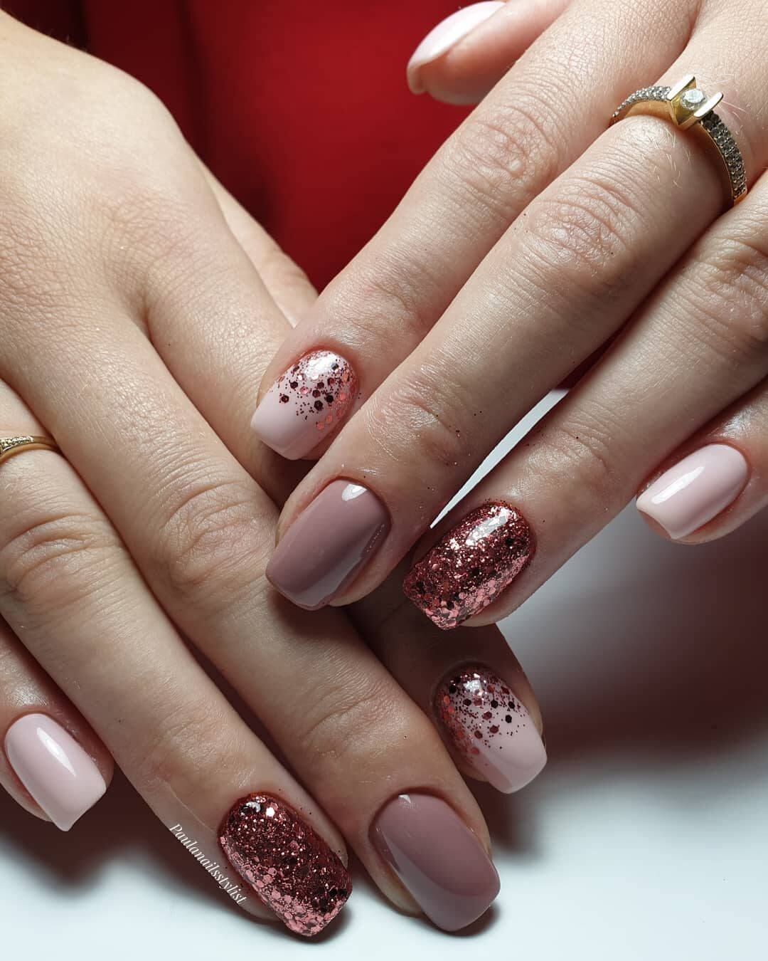 В 2022-2023 актуально смотрятся блестки на сером фоне ногтя. Маникюр с блестками — трендовое решения для стильных и современных модниц. Гель лак дополните блестящими камешками и наслаждайтесь красотой ноготков. Модные тенденции диктуют использование глиттера, он будет выглядеть оригинально с градиентным размывом.