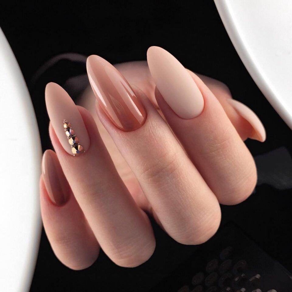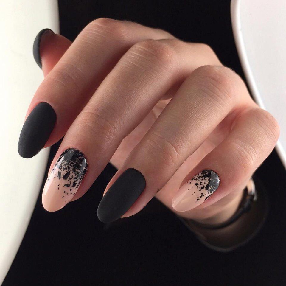 Обычный графитовый маникюр придаст больше моды и роскоши матовому топу. Обязательно рекомендуем попробовать! С ним привычный маникюр выступает абсолютно под другому. Пуанты или заостренные ногти рекомендуется делать матовыми чтобы смягчить углы.