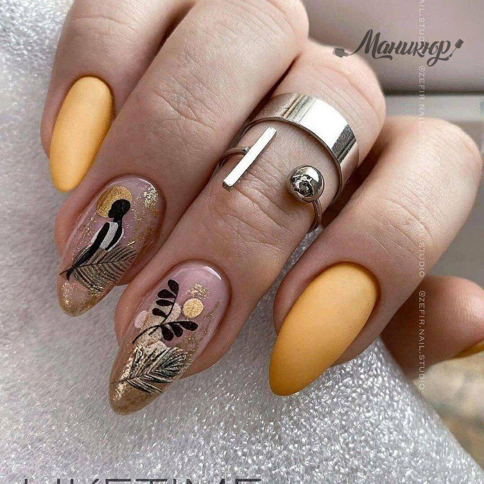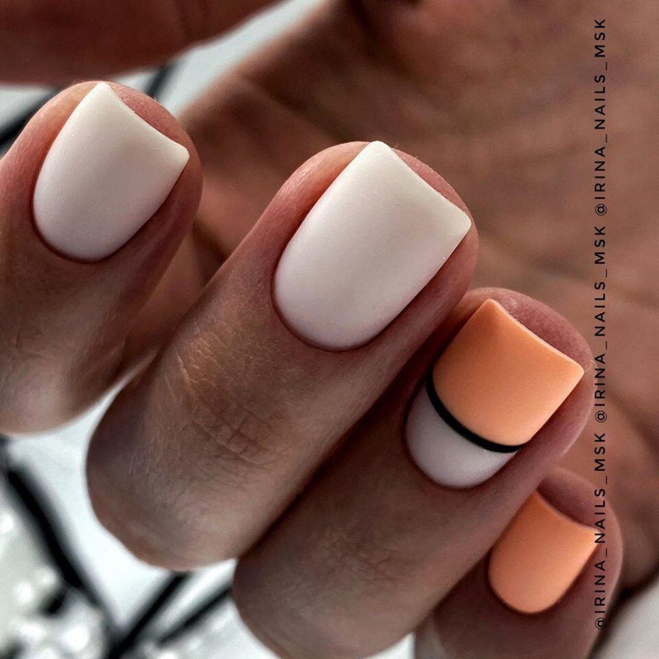 В сезоне 2022-2023 набирает популярность такая тенденция: глянцевый лак дополняется матовым. Данный маникюр, несомненно, выглядит небанально и стильно.