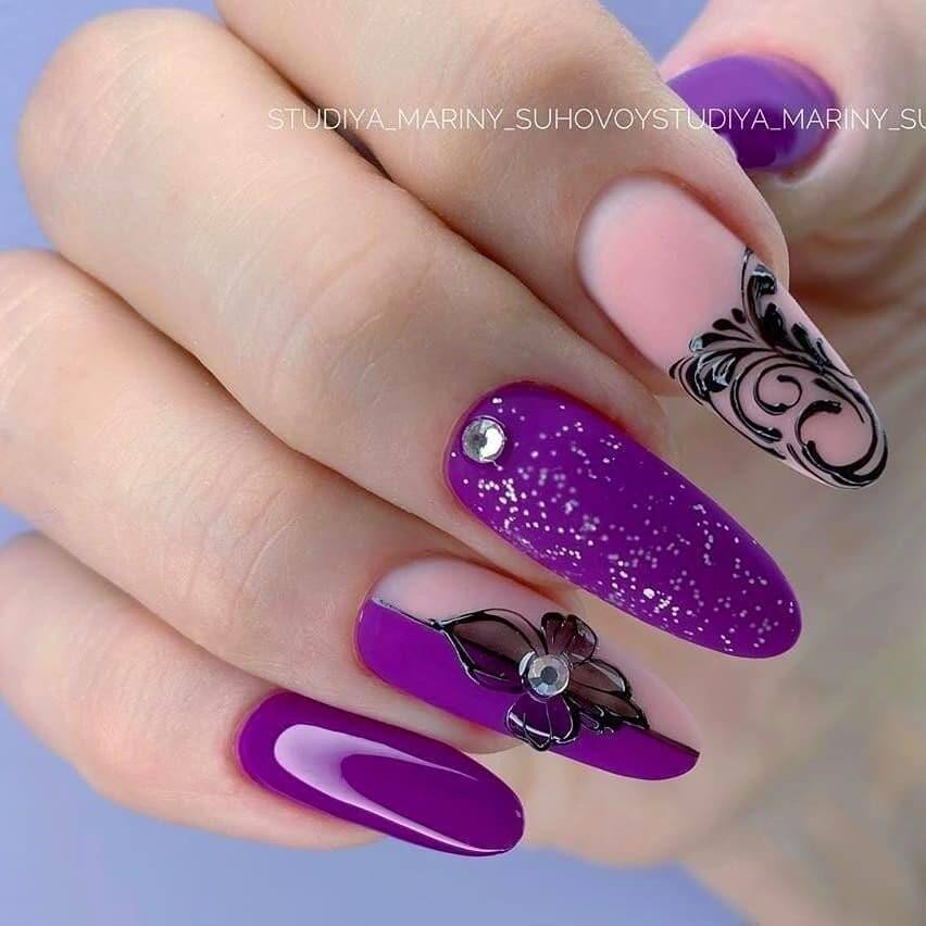 В результате после похода в салон их ручки украшены сложным, многоступенчатым маникюром. Он включает разные украшения на разных пальцах. Одновременно на руке может быть и французская «улыбка», и стразы, и орнаменты, сделанные с помощью пайеток.