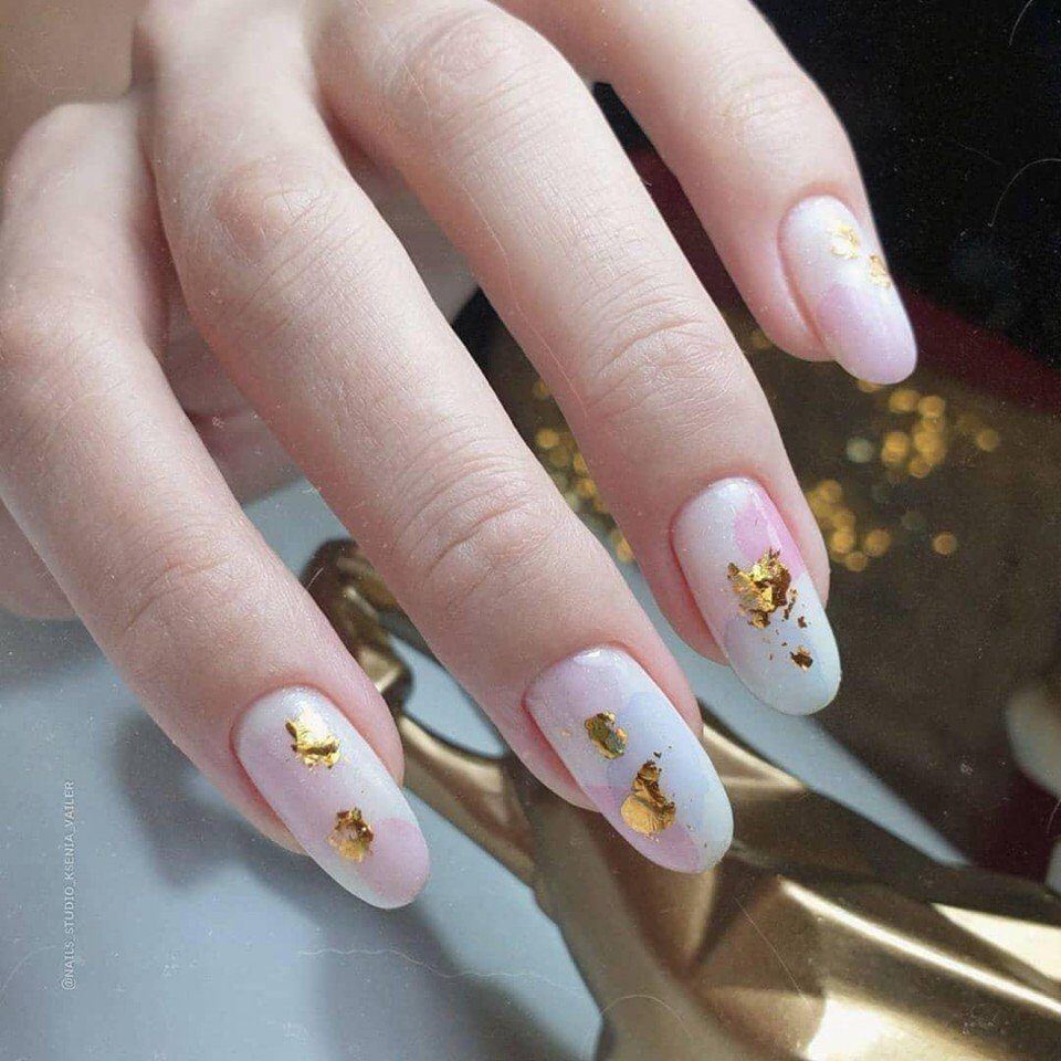 Роскошно, дорого и чрезвычайно оригинально — первое что приходит на ум при взгляде на мраморный дизайн. Чистейший серый или серо-голубой мрамор получается из «водной» техники. Для этого достаточно просто прорисовать его или воспользоваться необычным способом, обмазать лаком полиэтилен и приложить сверху на ноготь. Подобный лайфхак помогает получить красивые оригинальные разводы, действительно, очень похожие на мрамор.