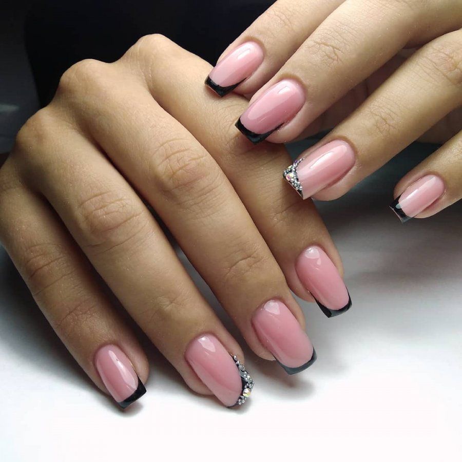 Такое сочетание считается актуальным в любое время. Украшение маникюра декоративными элементами может придать ему еще больше эстетики. Здесь удачно будет смотреться градиентный, геометрический дизайн, французский или лунный маникюр.