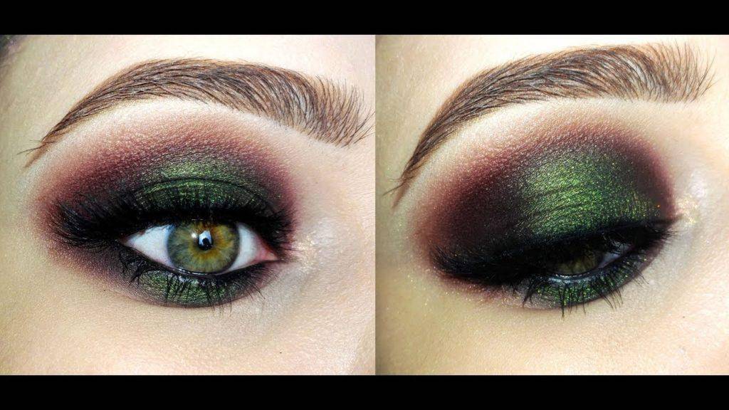 К зеленым глазам подходят такие оттенки, как коричневые, золотые, серебряные, салатовые, фиолетовые. Именно на контрастах данных цветов можно выгодно сыграть и создать непревзойденный дымчатый макияж. Главная задача — это суметь сделать плавный и красивый переход от светлого тона теней к темному и даже к черному.