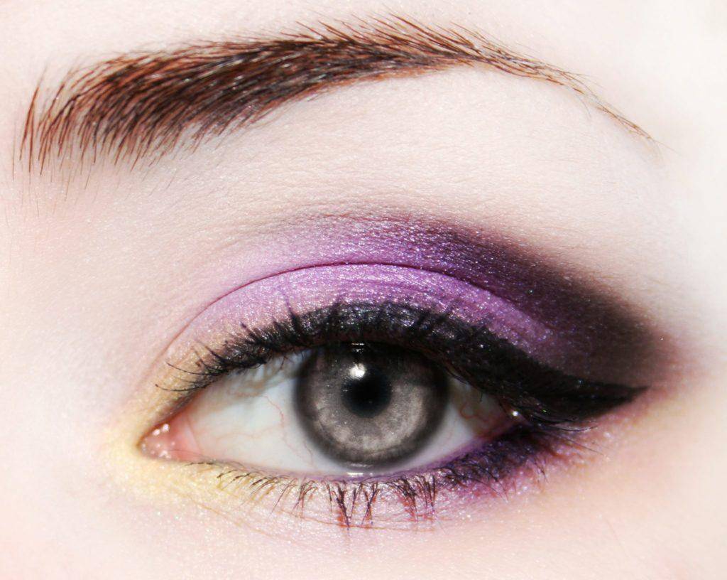 Серые глаза и черная дымка вокруг них — идеальное сочетание потому, как эти цвета являются родственными. Поэтому сероглазкам с не слишком бледной кожей подойдет классический смоки айс с черными и темно-серым оттенками. Эффектным станет также фиолетовых, коричневых, а также золотистых оттенков