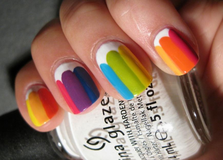 Начнем с того, что самым популярным и наиболее простым дизайном являются ногти цвета радуги. Чтобы сделать их в домашних условиях, не потребуются специальные навыки, потому как оттенки из известной считалочки прекрасно соседствуют в правильном порядке или произвольном. Эта же особенность характеризует и тона пастельной гаммы. Специалисты давно уже отметили, что матовость и приглушенность, свойственные этой палитре, позволяют смело экспериментировать с любыми комбинациями. Еще одним оригинальным сочетанием эксперты называют «светофор». В создании маникюра можно использовать сразу три цвета или же комбинацию из двух.