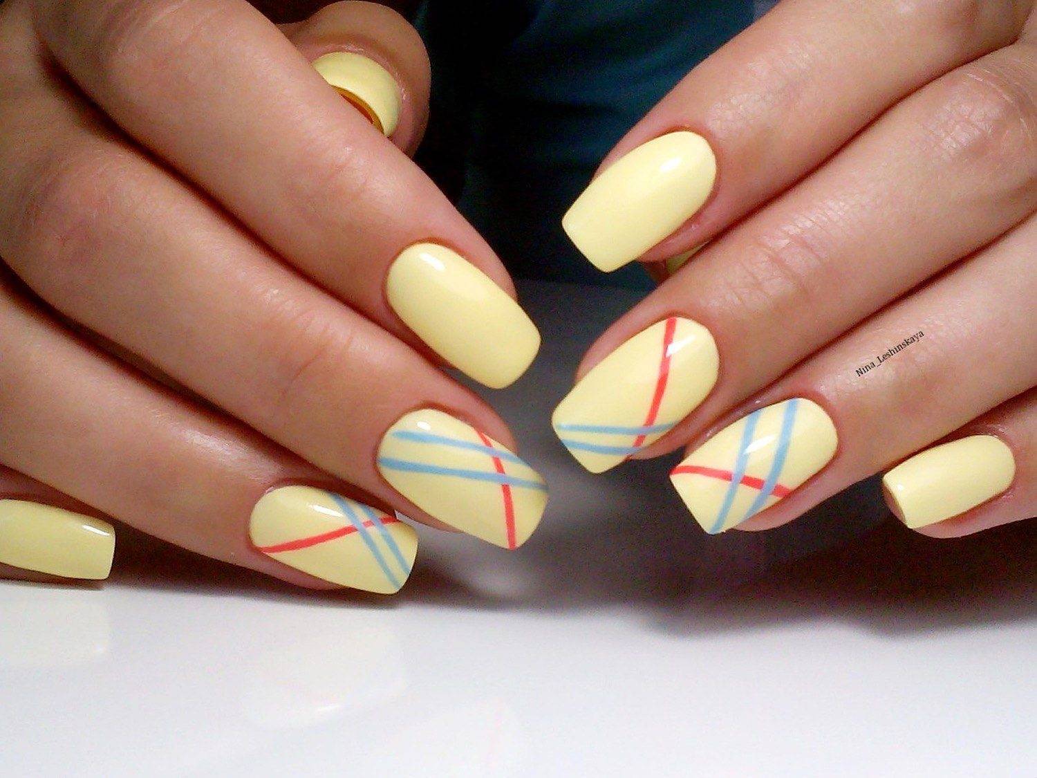 В моде однотонный маникюр, но если захочется креативного дизайна, то желтый можно комбинировать практически с любым цветом. Есть основное правило: оттенки должны совпадать по температуре и насыщенности. Если выбран пастельный лимонный, то и дополнительные цвета также должны быть из нежной гаммы.