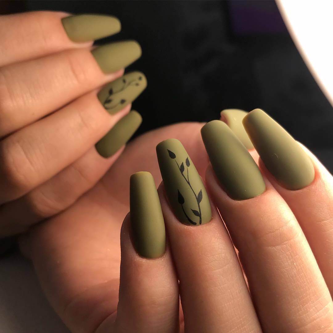 - Оливковый. Имеет легкий коричневатый отлив. Вариант для офисного маникюра.