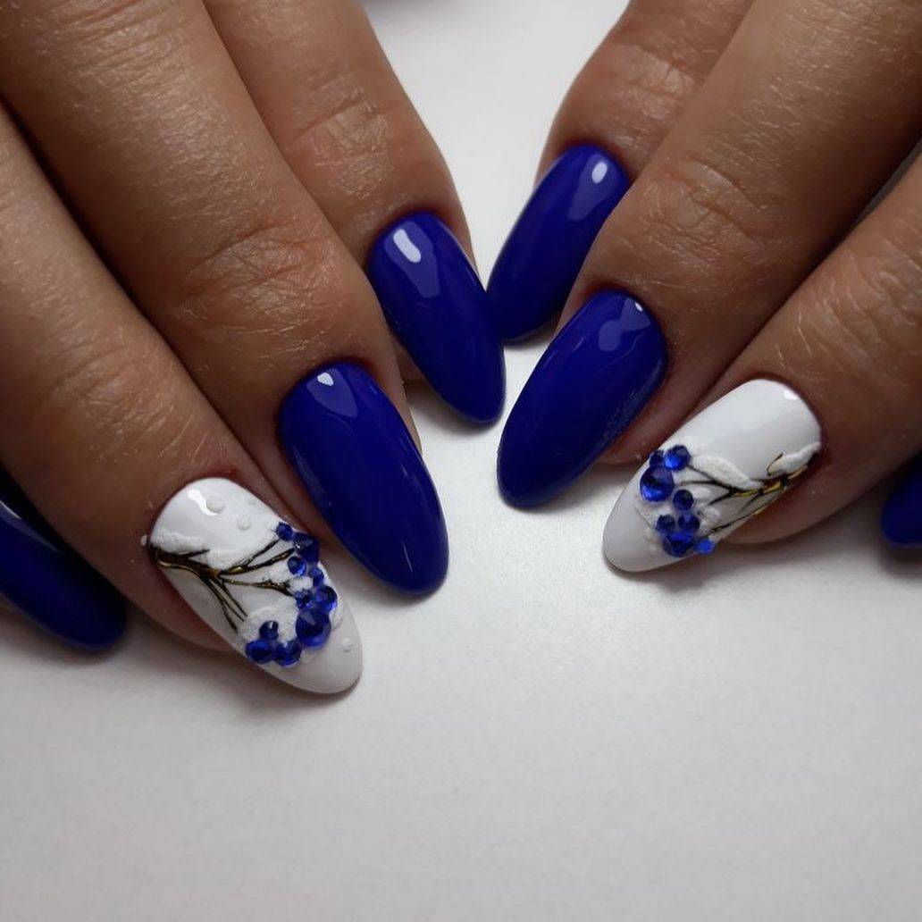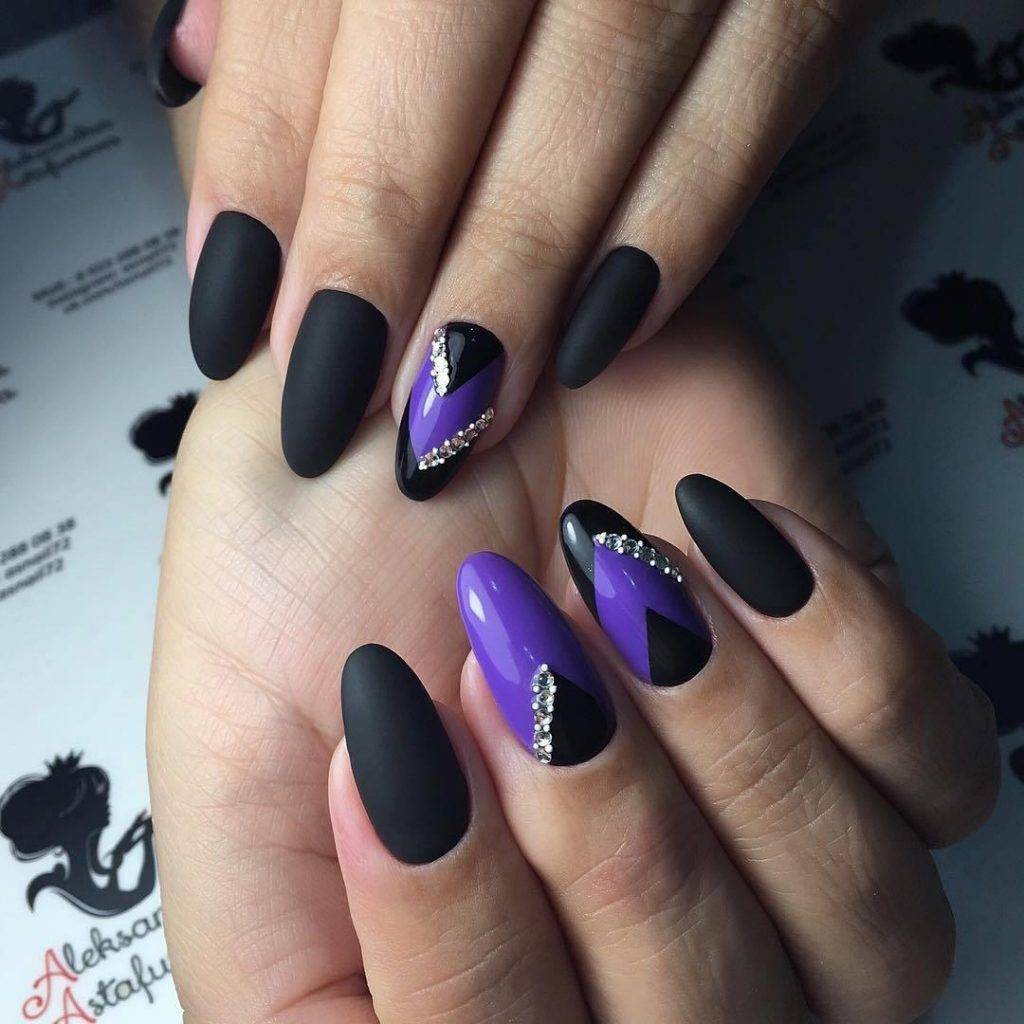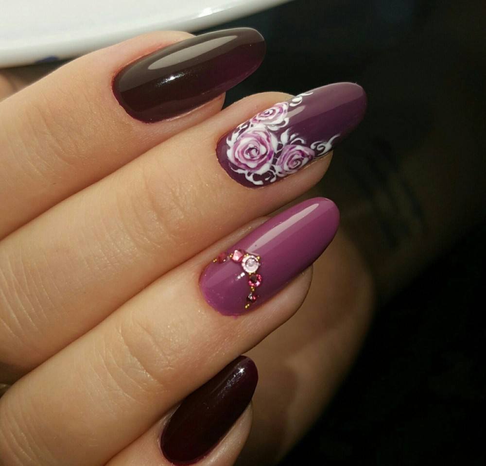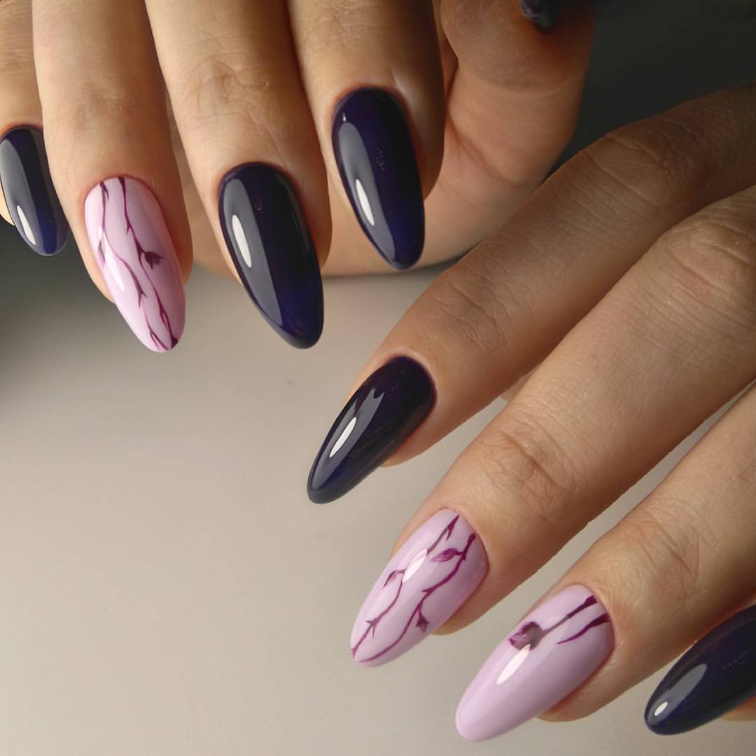 Фиолетовый. Этот цвет считается более уместным для нарощенных ногтей, нежели синий. Оригинально выглядят сливовый, сиреневый, пурпурный и оттенок индиго.