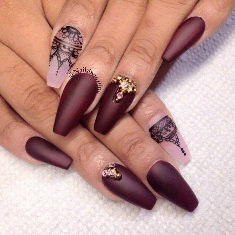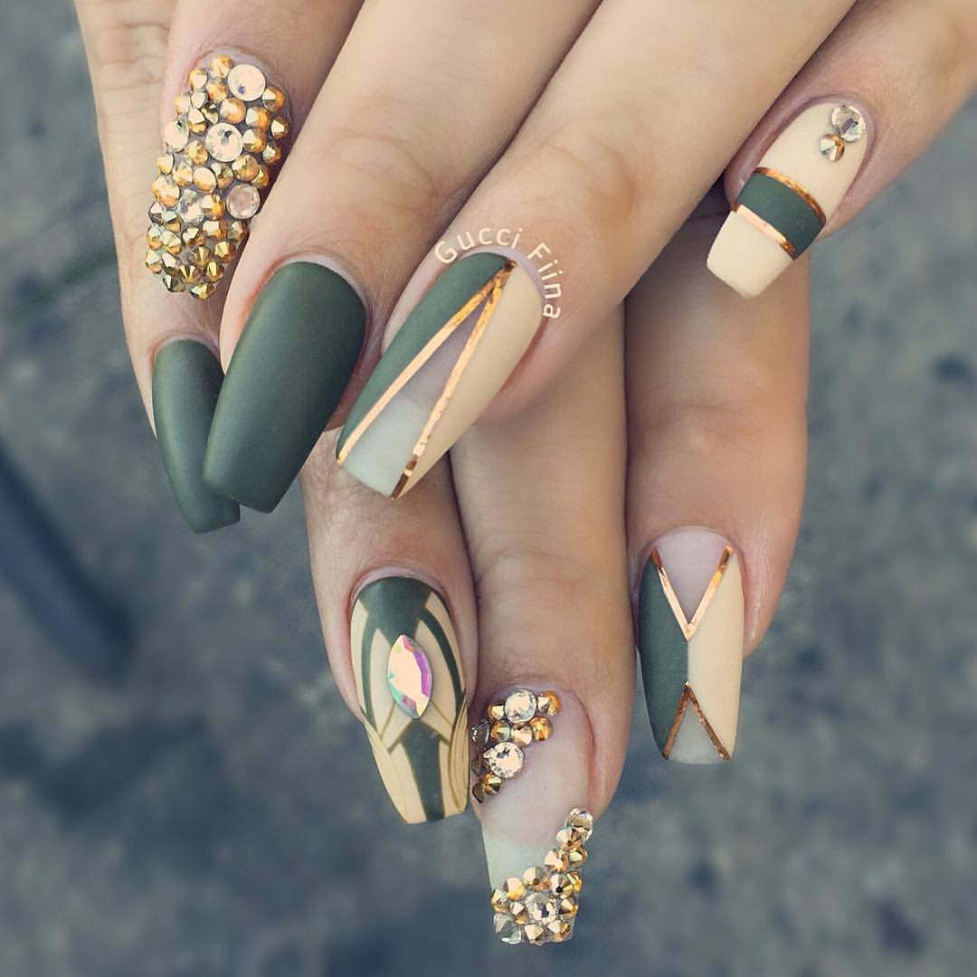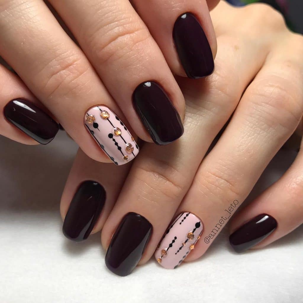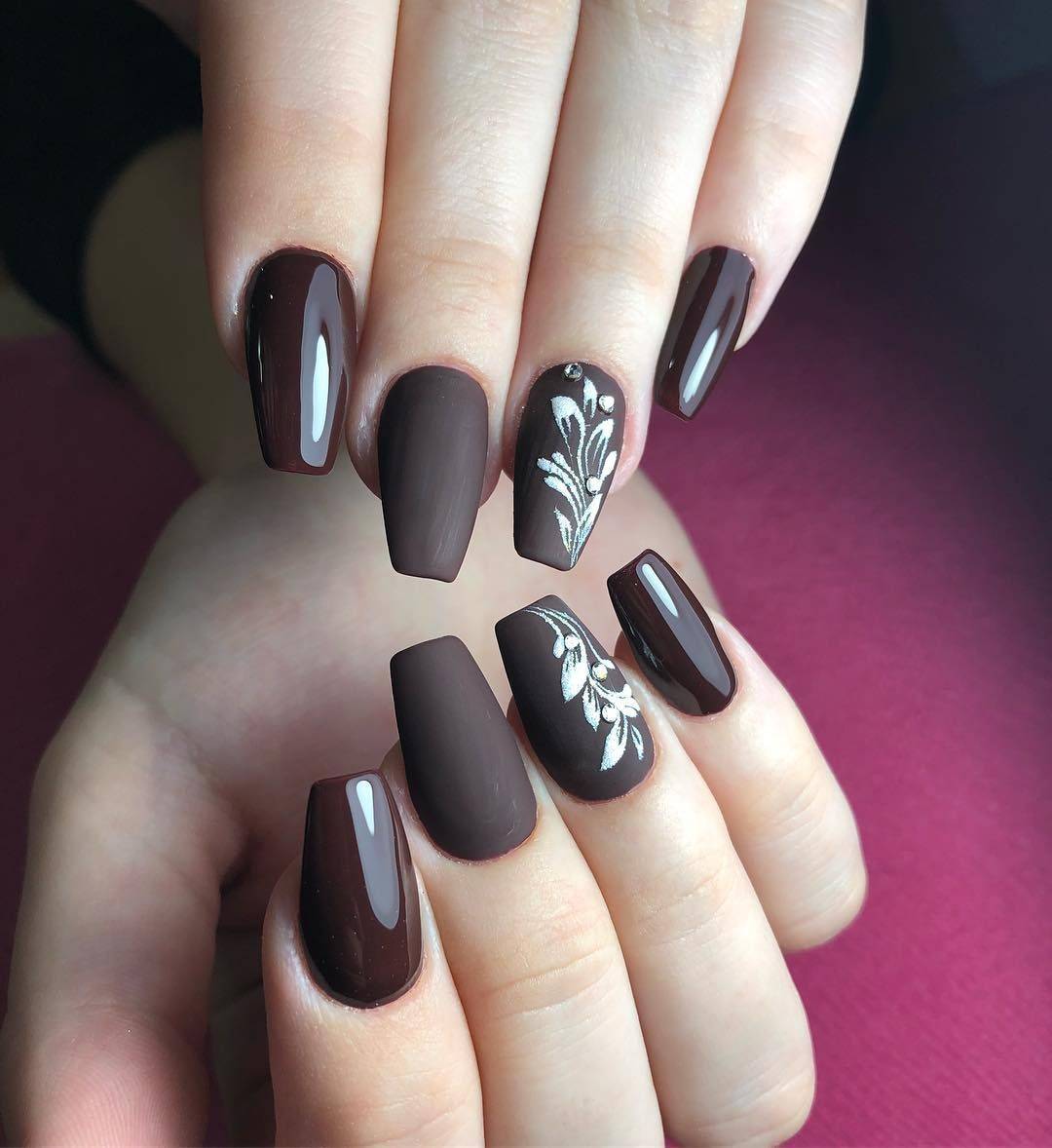 Маникюр с камнями просто шикарно смотрится в матовом исполнении, такой дизайн не оставит равнодушным никого. В осеннем маникюре сезона 2020 камни и стразы наносятся на ногтевую пластину в виде красивого узора на один-два пальца, или в виде мелких камушек на всю ногтевую пластину, тоже в виде акцента. Идеи для вдохновения, смотрите на фото ниже: