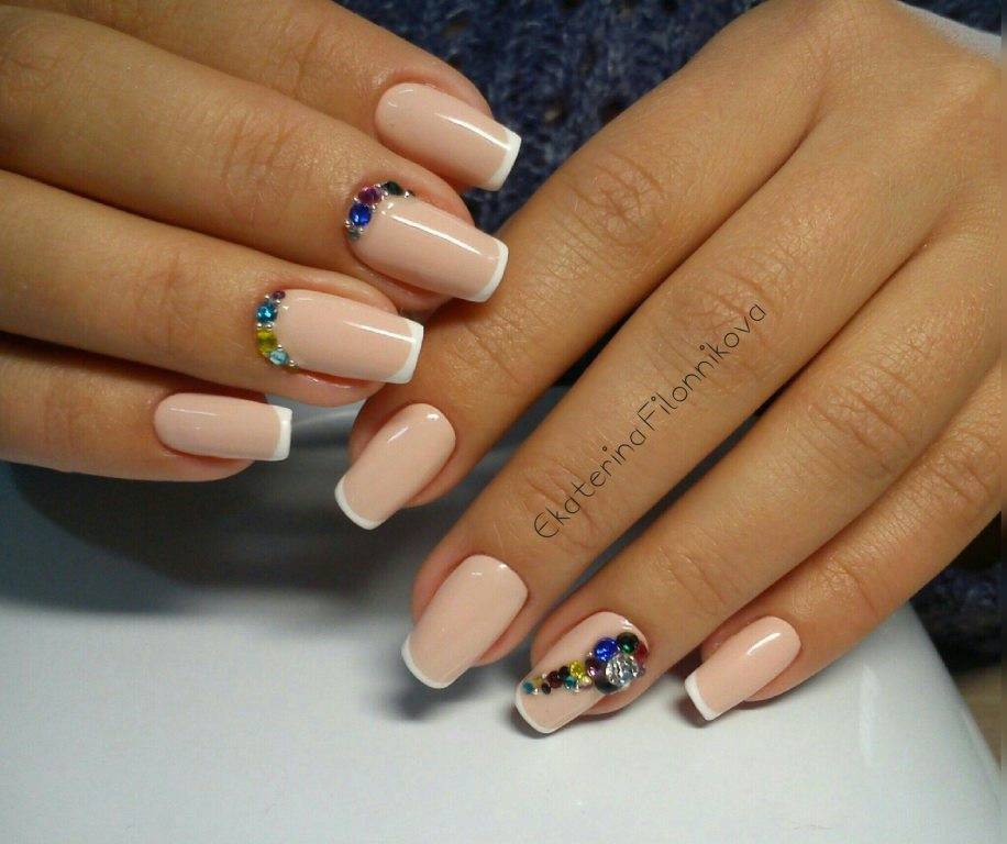 Этот стиль давно завоевал статус трендового. Он по-своему универсальный, смотрится изысканно и утонченно, визуально хорошо удлиняет пальцы и делает руки более нежными. И разноцветный френч тоже будет выглядеть благородно, но при этом броско.
