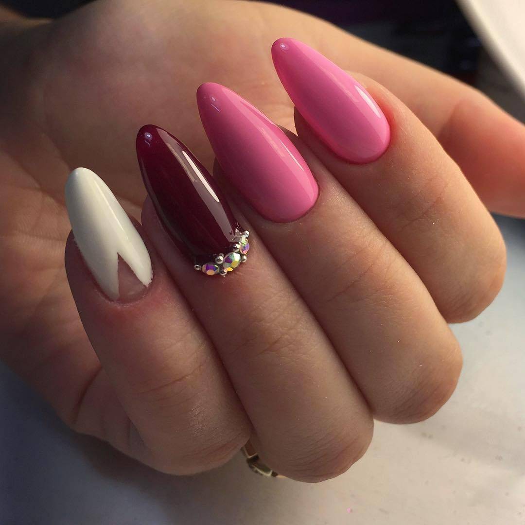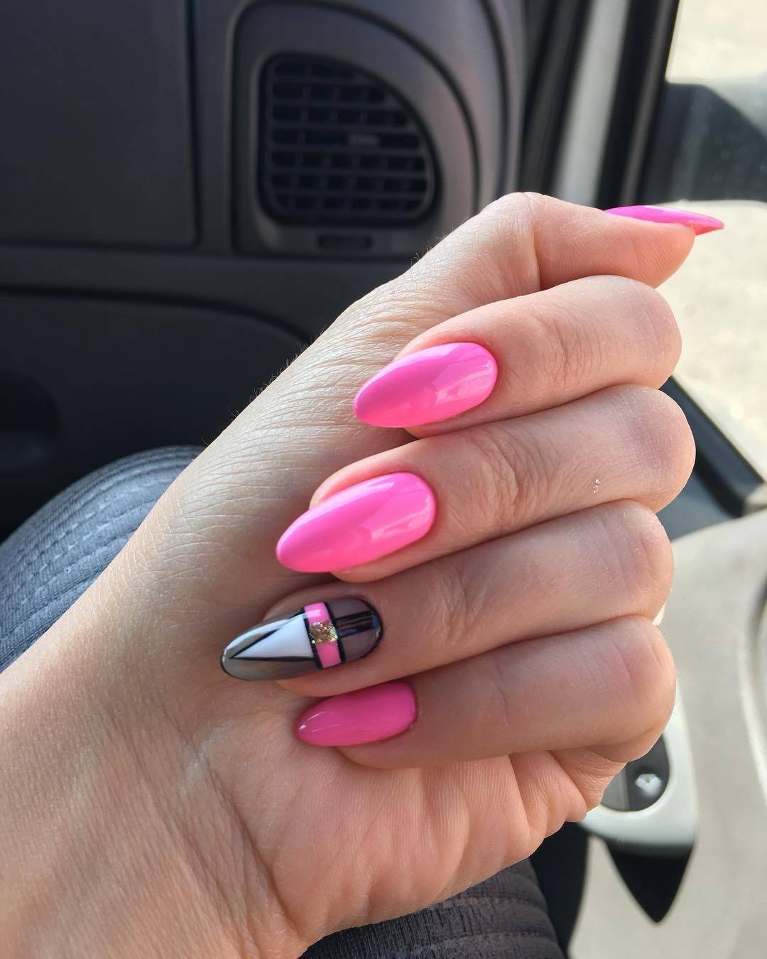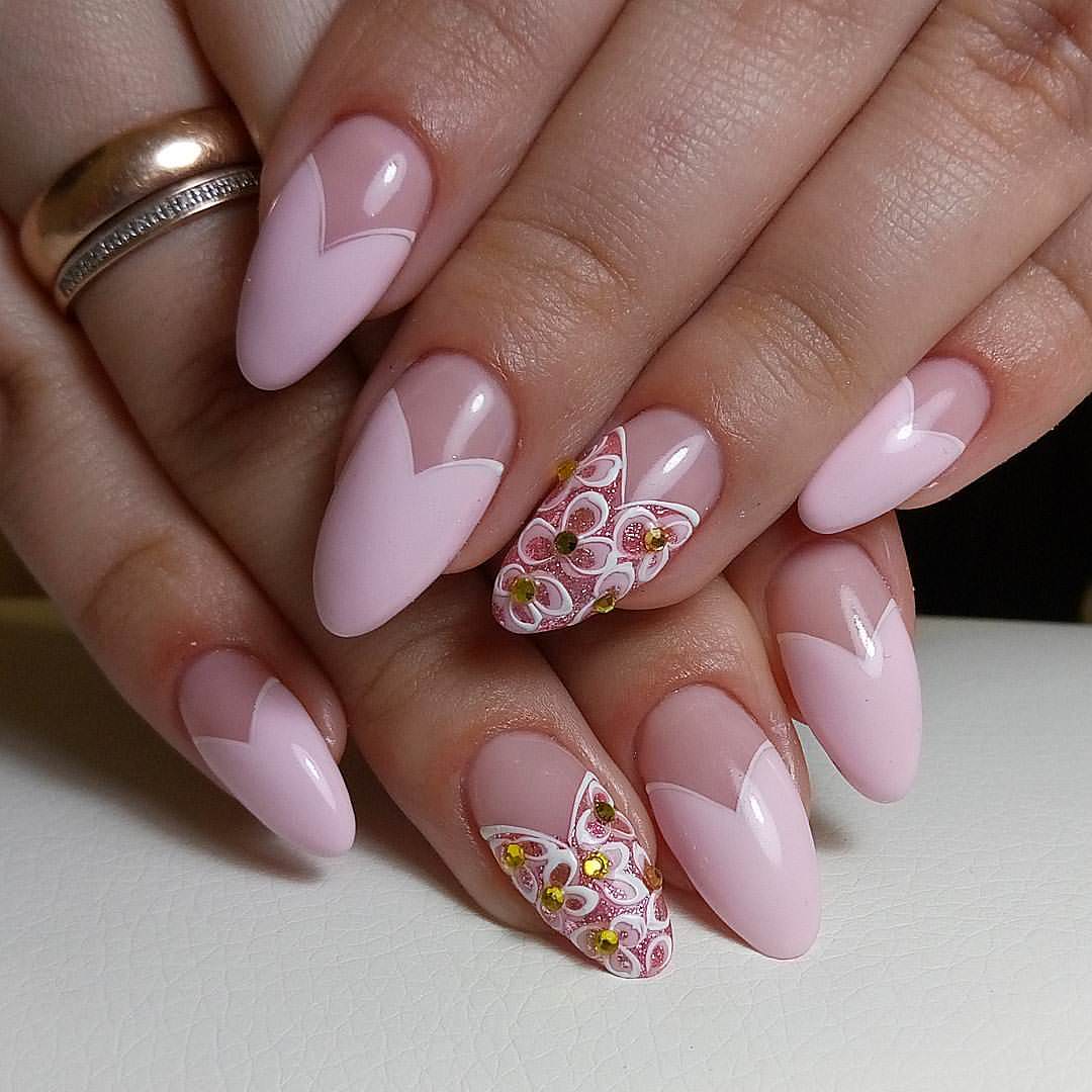 Миндальная форма стала фаворитом у большинства девушек, она смотрится очень элегантно и женственно. Но ее не рекомендуется выбирать любительницам активного образа жизни — такие ногти могут ломаться. По той же причине не подойдет она обладательницам ломких и тонких ногтевых пластин.