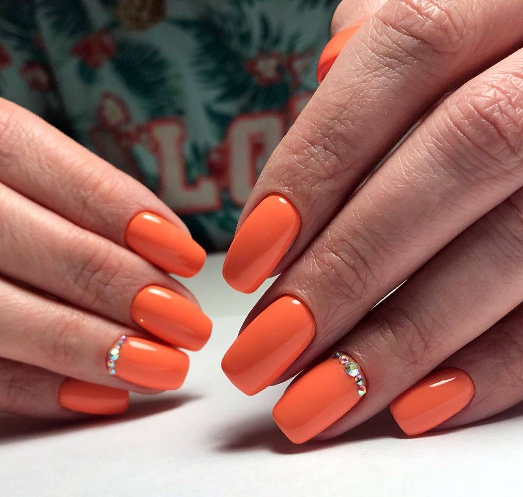 Оранжевый. Данный тон нравится многим за его отличную сочетаемость с темным дизайном, а также с другими яркими лаками. Очень привлекательно смотрятся коралловые и тыквенные оттенки.