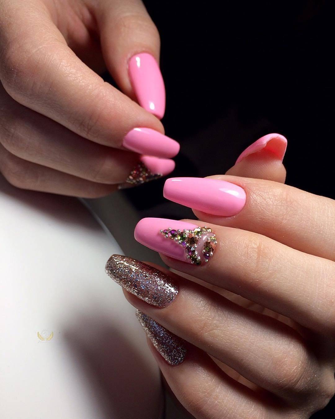 Форма ногтей «балерина» подойдет женщинам, которые любят длинные ногти и яркий дизайн. Она идеальна для узких ногтевых пластин. Это своего рода симбиоз треугольной, квадратной и миндальной формы. Ее можно было часто видеть на фото Кайли Дженнер в 2016 году — именно она ввела эту форму ноготков в моду.