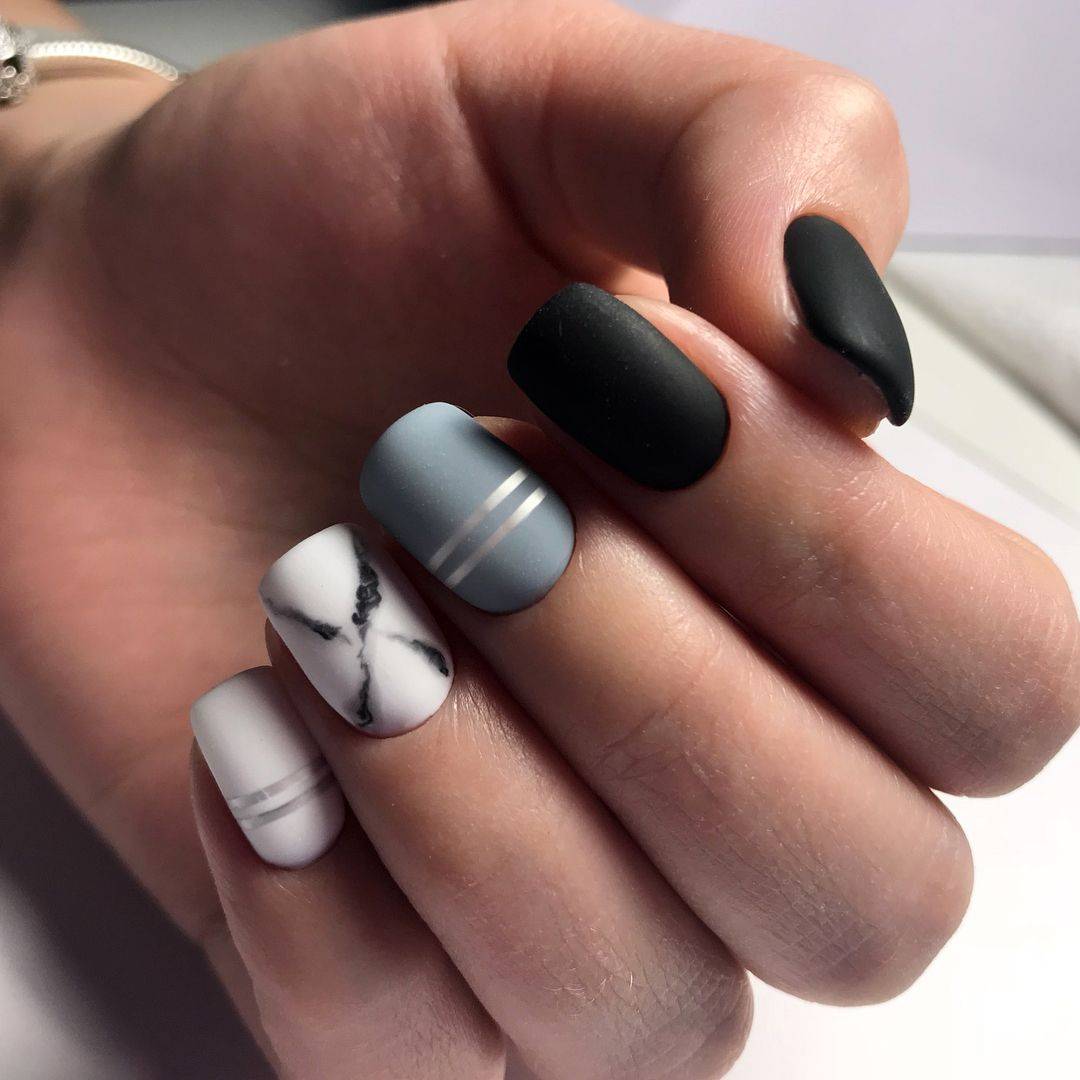 Одним из самых модных вариантов дизайна будет лаконичный монохром, дополненный мраморным эффектом. Фото оформленных таким образом ногтей очень много среди новинок и последних трендов, представленных на 2021 год.