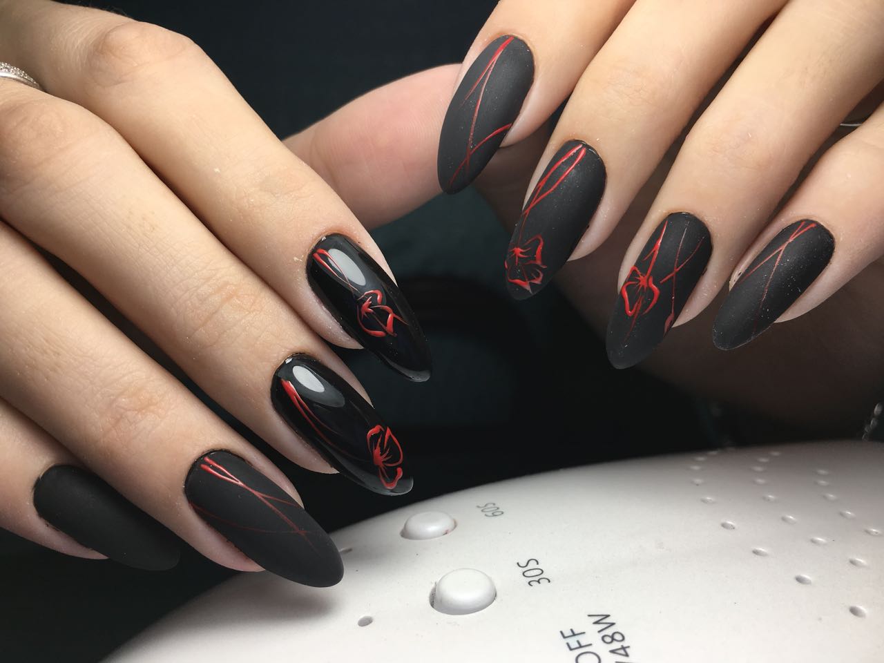 красные ногти с рисунком