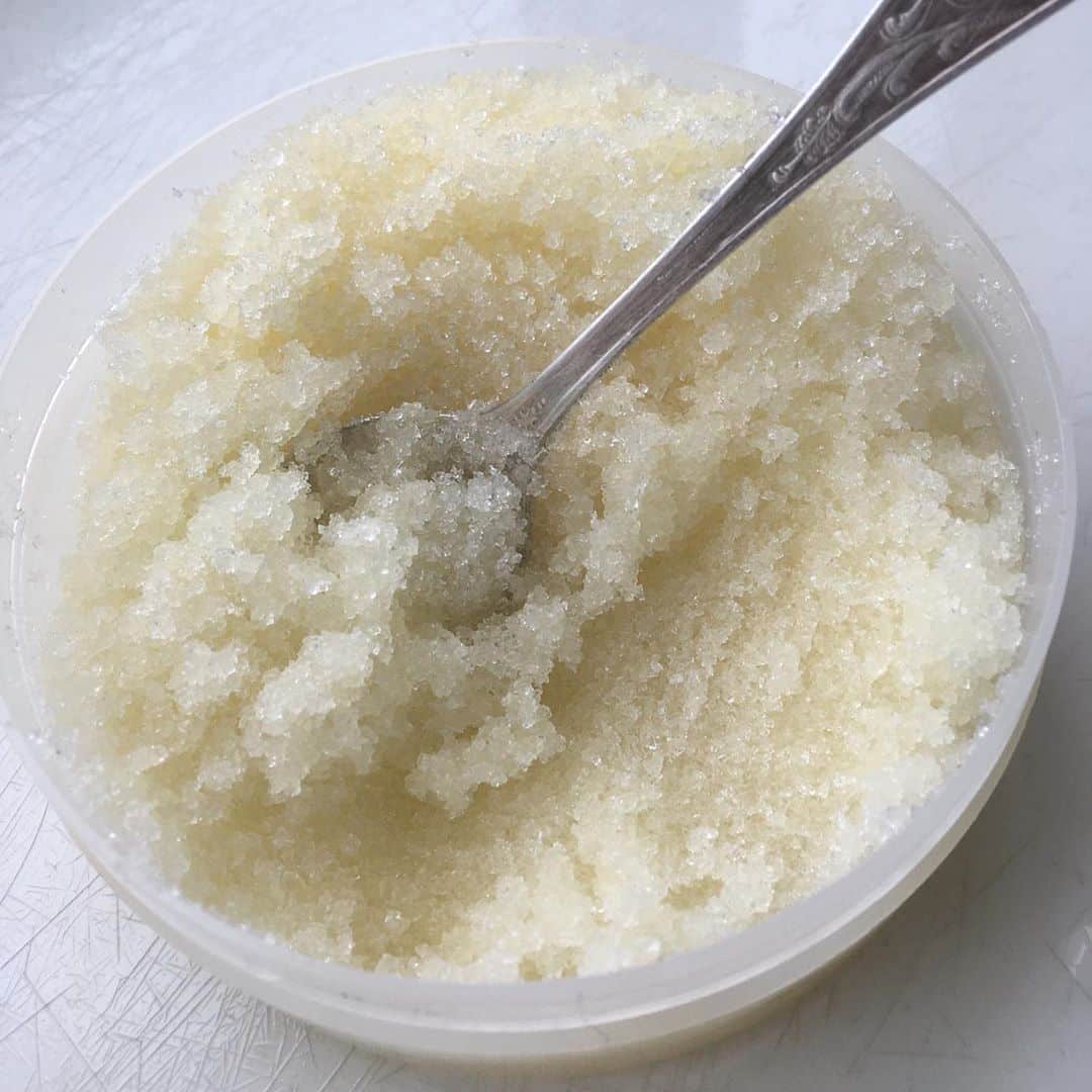 - Небольшое количество скраба распредели по ступне и массируй кожу частичками 3-5 минут, после чего ополосни ноги;