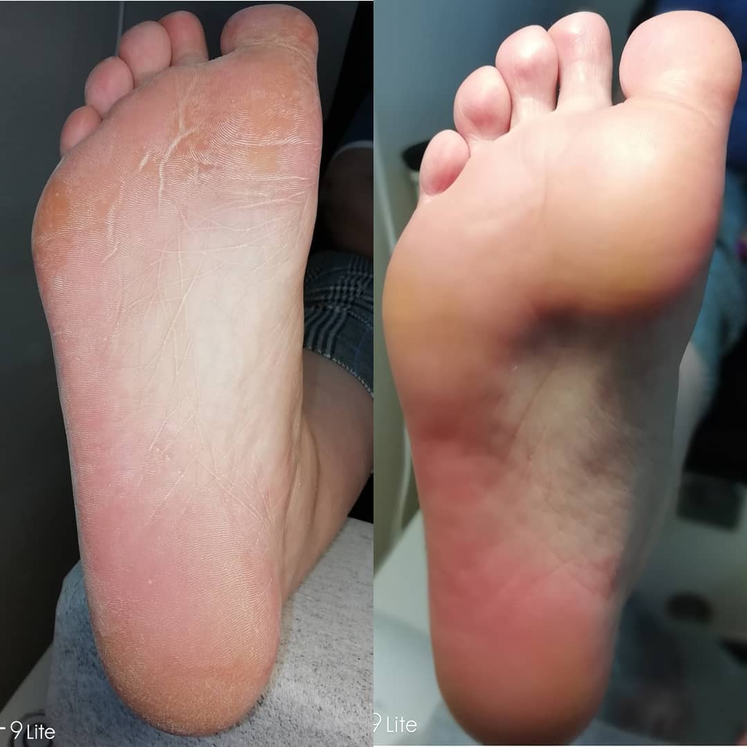 - При наличии диабета, трещин на пятках, стержневых мозолей рекомендуется медицинский педикюр. Видимый терапевтический эффект сразу после сеанса.