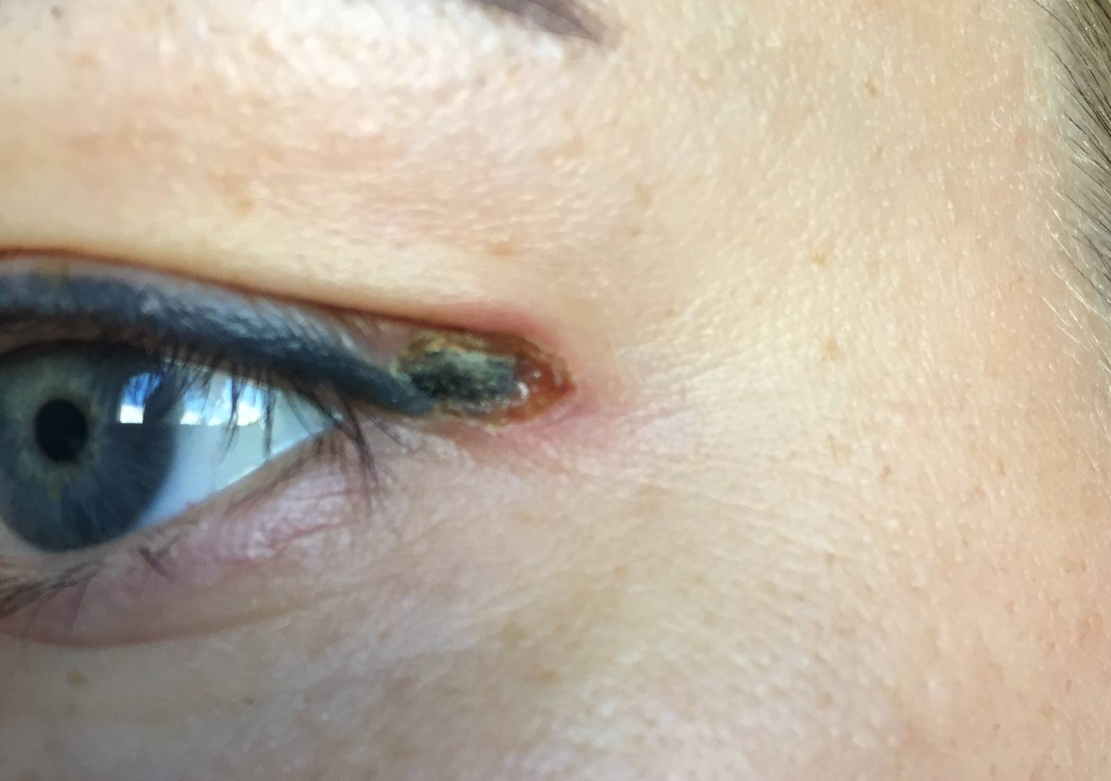 В области век после татуажа может начаться аллергическая реакция, зуд. Кожа может опухать. Позаботьтесь о противоаллергических препаратах. Мастер порекомендует лечебную гидрокортизоновую мазь для ухода за веками, возможно понадобится компресс. Обязательно узнайте про частоту применения лечебных средств.