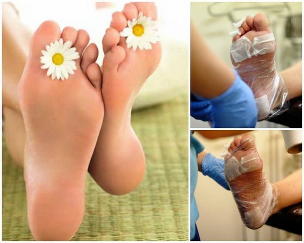 - Для начала необходимо подготовить кожу ступней. Нужно распарить ноги в теплой воде в специальной ванночке, желательно с добавлением дезинфицирующего средства, например перекиси водорода. Распаривание проводится от 10 до 30 минут.