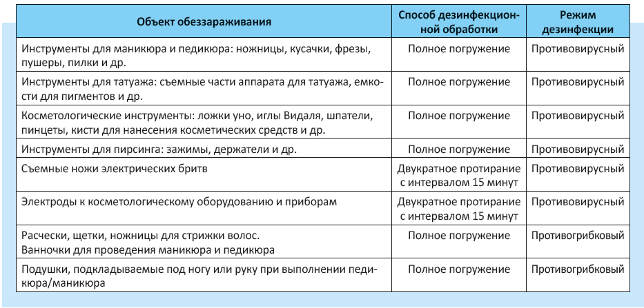 Обеззараживать способом протирания допустимо только некоторые изделия, учитывая их конструктивные особенности и невозможность полного погружения в дезрастворы. Это, например, электроды к косметологическому оборудованию, ножи парикмахерских электробритв.