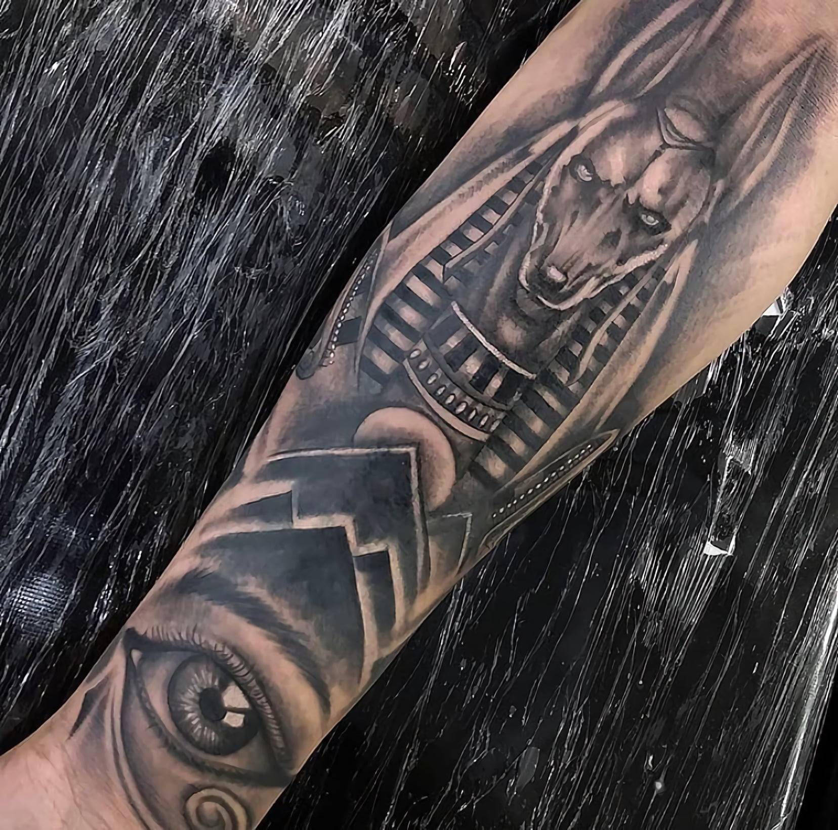 Если это продолжение рукава, то очень важно, чтобы стили рисунков сочетались. Этот момент мы подробно разобрали в статье «Тату рукав для мужчин»