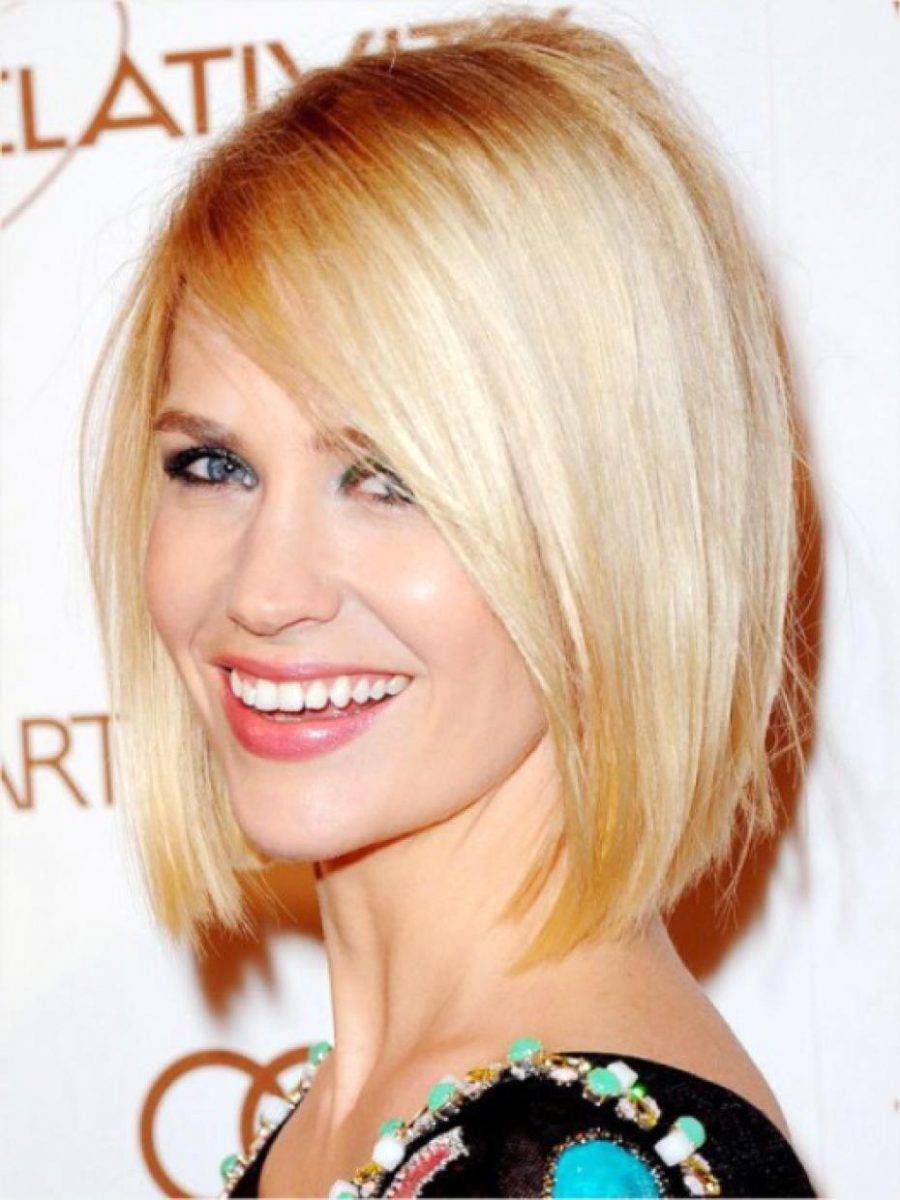 Круглолицые женщины за 50-60 лет часто выбирают удлиненные модификации боба. Передние пряди зрительно вытягивают лицо, скрывают опустившийся овал и сужают широкие части. Выигрышно смотрится комбинация с косой челкой и облегченными кончиками. Также подойдут классика, асимметрия и А-образный тип.
