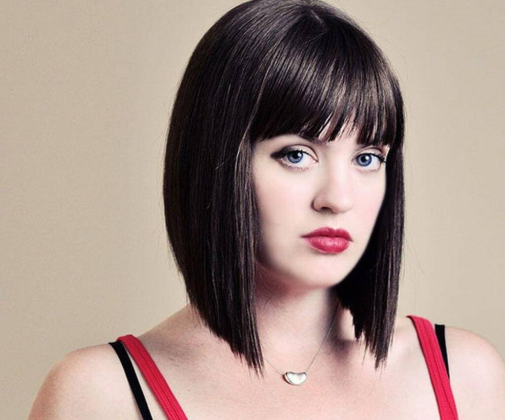 Еще одной хитростью служит челка. Сама челка может быть любой, косой, на бок, челка шторка, только стоит избегать тяжелых и прямых челок, ведь они смогут утяжелить лицо и сделать его еще объемнее. Также стоит избегать слишком коротких челок, они приведут к получению несуразного, а порой даже глупого вида.
