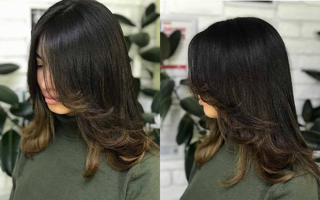 Стрижка «лесенкой» вносит корректировки в виде различных длин. Спереди волосы подстрижены в виде градиента: от короткого к удлиненному. Затем самая длинная линия волос укорачивается к основанию шеи сзади.