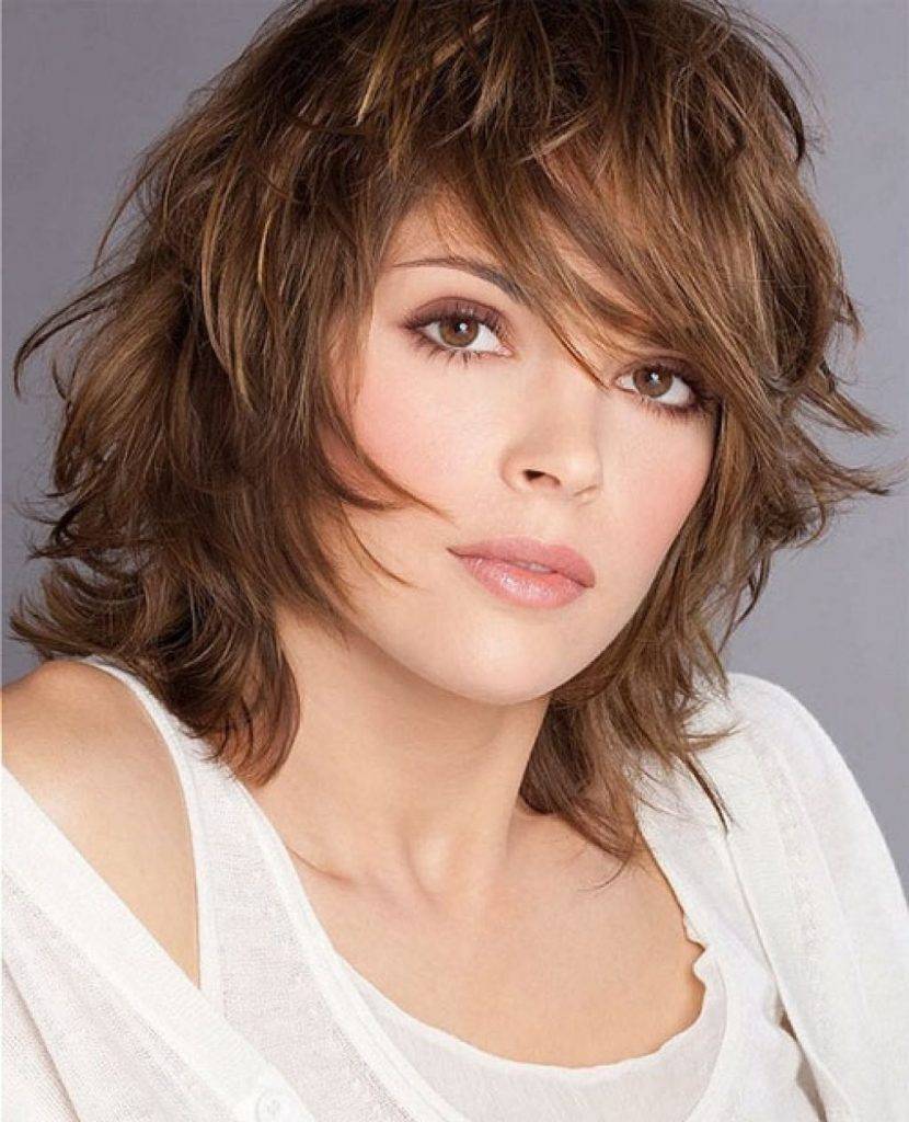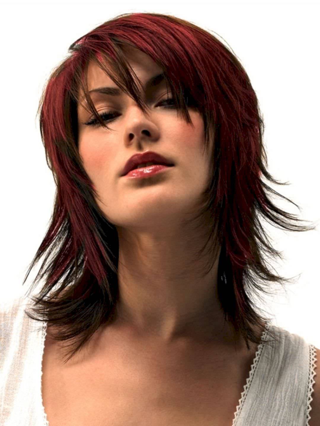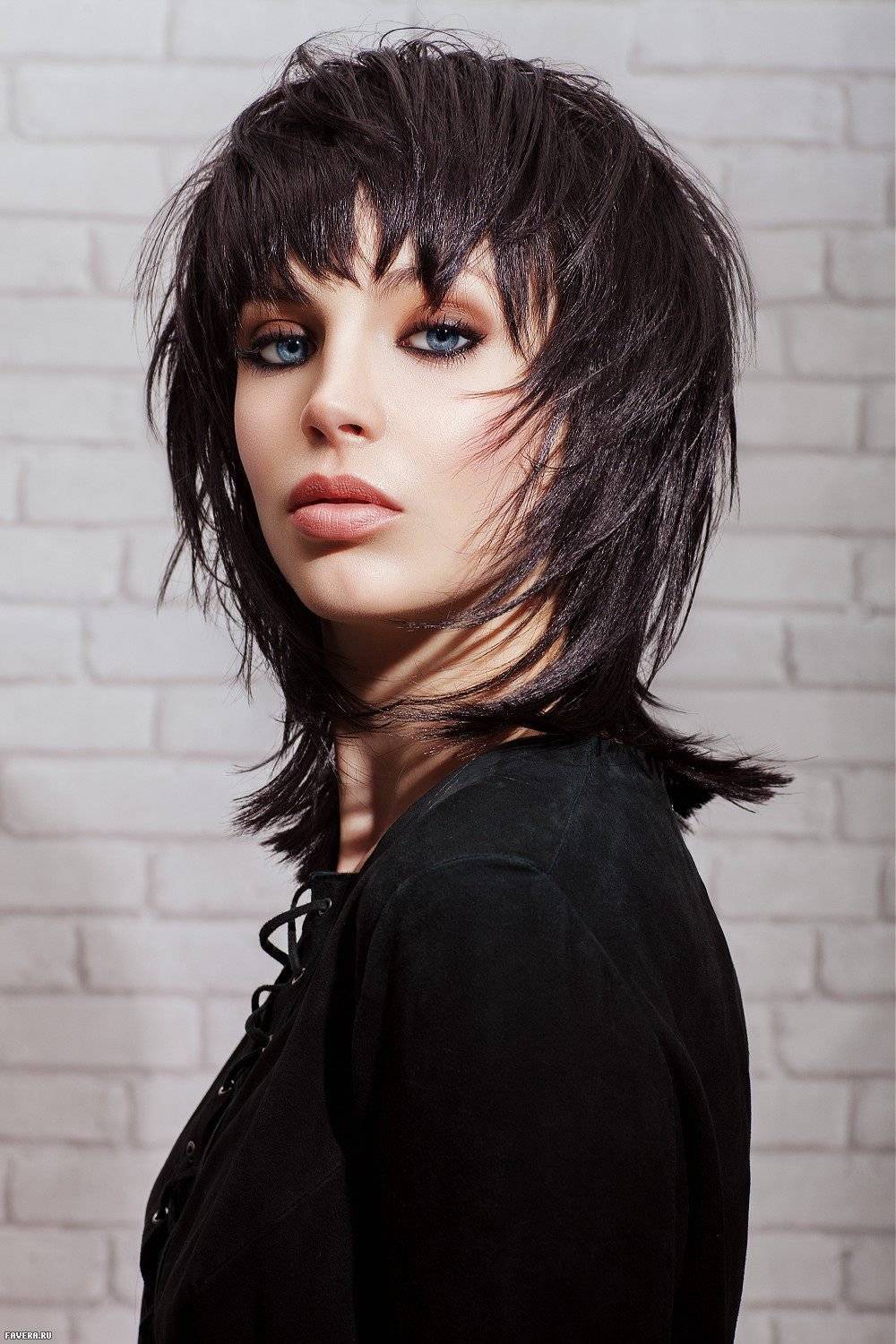 Обладательницы волос средней длины очень часто выбирают «рваные» стрижки. Они всегда эффектно смотрятся и легко укладываются. Здесь есть над чем поэкспериментировать. Можно сделать рапсодию с чёлкой — прямой или косой. Это освежит образ, сделает более выразительными глаза. Стрижка с чёлкой спасёт женщин с большим лбом и крупными чертами лица.