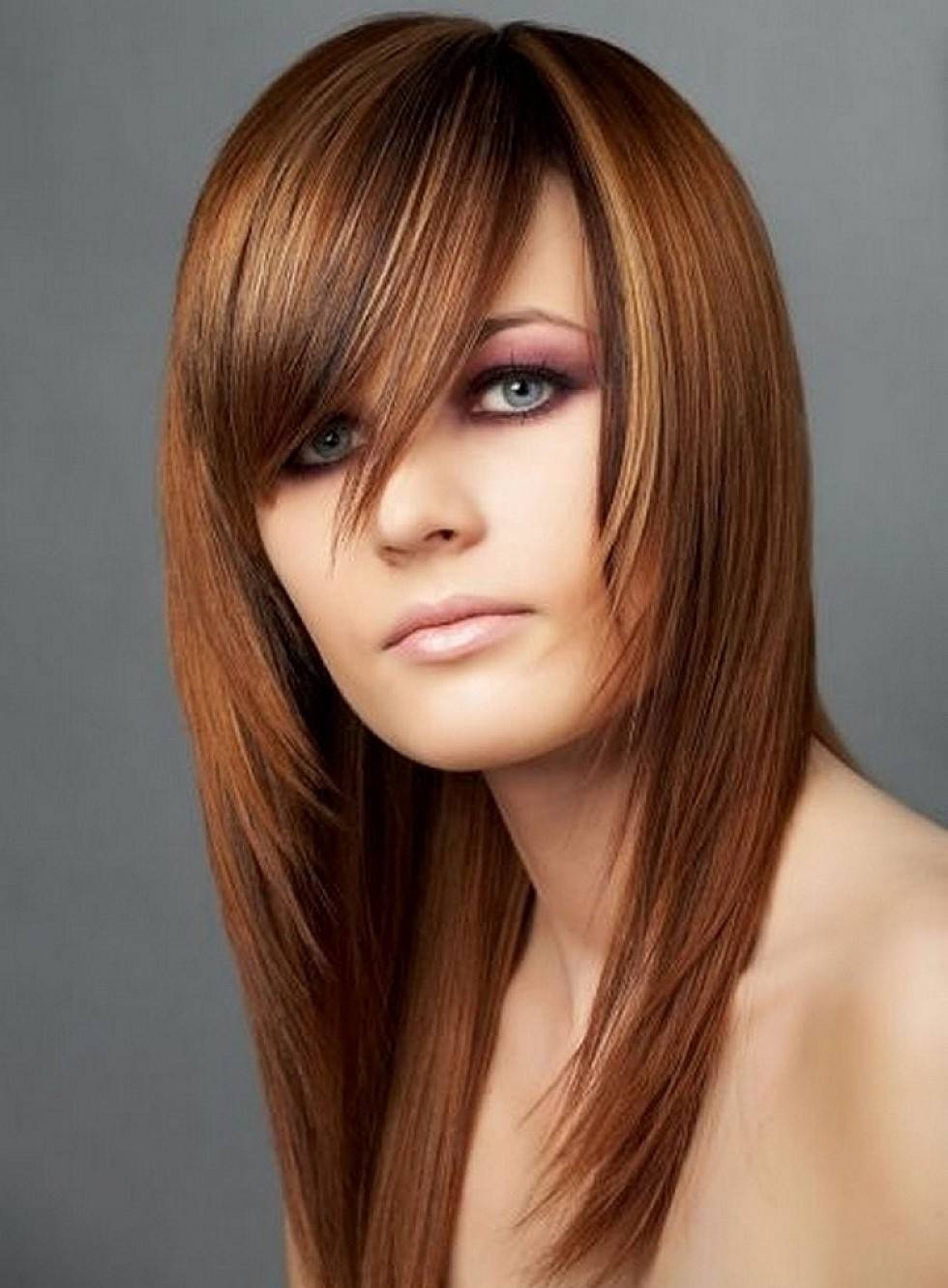 - косая чёлка удлиняет черты лица, поэтому она подойдёт для круглолицых девушек. К тому же такая форма чёлки придаёт дополнительный объём причёске;